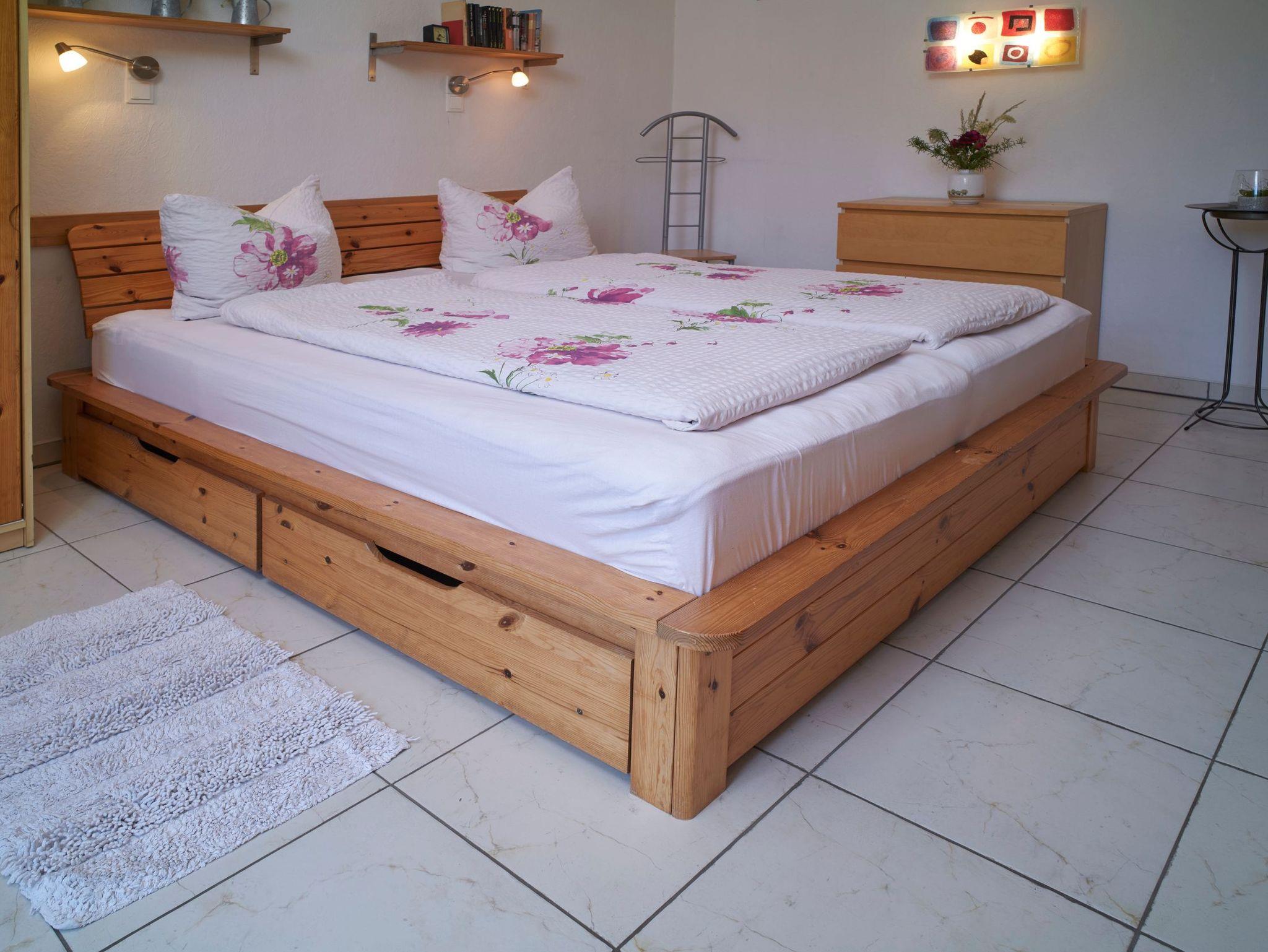 Die barrierefreie Ferienwohnung bietet dir auf 50 qm alles, was du für einen entspannten Aufenthalt zu zweit oder als kleine Gruppe brauchst. Im Schlafzimmer wartet ein großes Doppelbett, im Wohnbereich zwei gemütliche Sofas, die sich bei Bedarf auch als Aufbettung eignen.