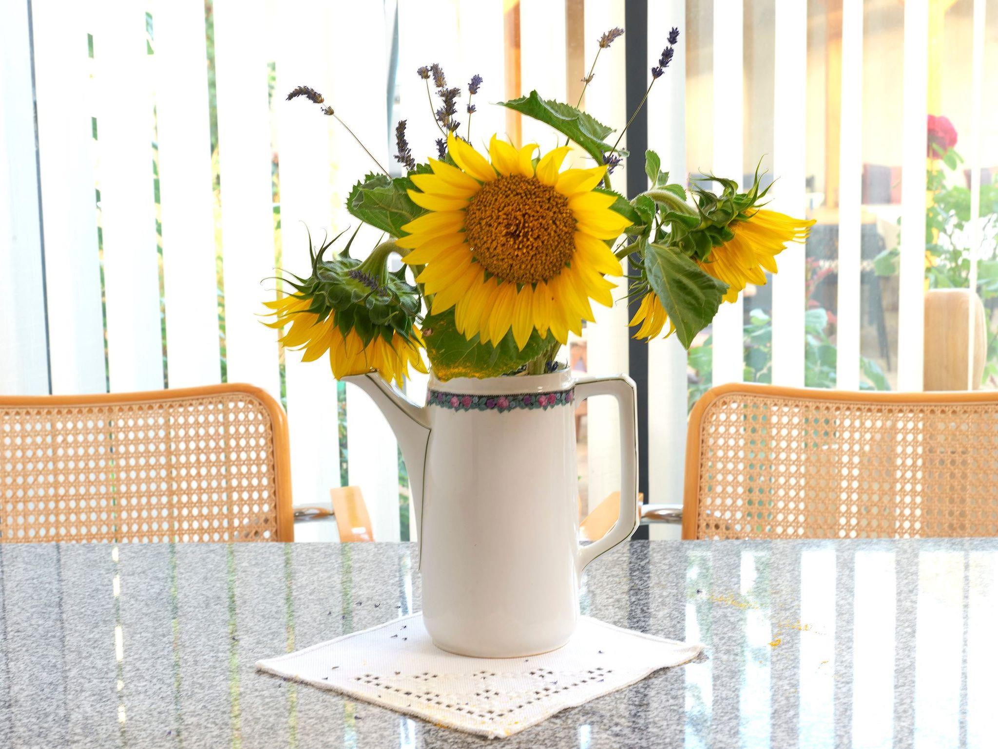 In der offenen Küche findest du alles, was du brauchst: Herd, Backofen, Kühlschrank mit Gefrierfach, Geschirrspüler sowie Toaster, Wasserkocher und Kaffeemaschine. Am Esstisch hast du einen schönen Blick in den Innenhof. Bitte beachte: In der Wohnung wird nicht geraucht.