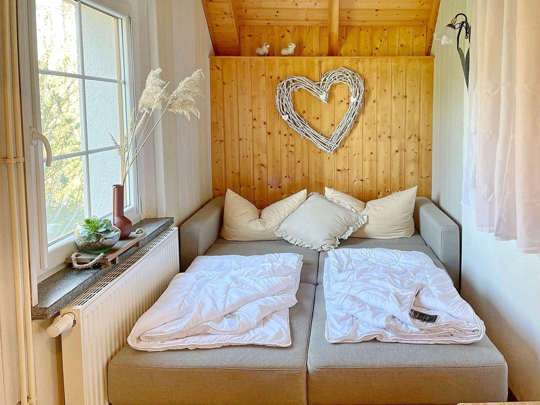 Das spreewaldtypische Haus hat eine überdachte Terrasse am Eingangsbereich, mit einem großen Esstisch und Bestuhlung. Der Flur ist kombiniert mit einer Küchenzeile (2 Platten-Herd, Abwaschbecken, Toaster, Kaffeemaschine, Wasserkocher und zahlreiche Küchenutensilien) und Zugang zum Esszimmer, mit Tisch und Sitzecke. Das Bad, mit Dusche und WC, sowie das offene Kinderzimmer befinden sich im Erdgeschoss. Das Schlafzimmer mit einem Doppelbett sowie einem Flachbild TV steht Ihnen im Obergeschoss zur Verfügung.