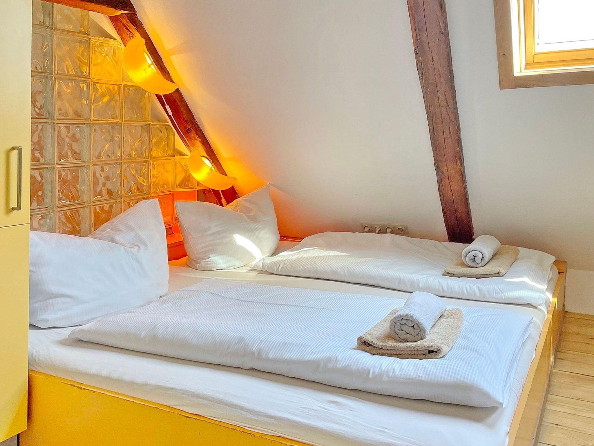 In einer ehemaligen Tischlerei wurden die Ferienwohnungen Altstadtflair mit viel Mühe und Handarbeit ausgebaut. Der Innenhof wird im Wechsel von Ihrer Gastgeberin liebevoll dekoriert. Sie wohnen mitten in der historischen Altstadt in einer hinteren Gasse. Dort steht Ihnen eine große Liegewiese mit alten Obstbäumen zum Verweilen und erholen zur Verfügung. Das Auto darf auf dem Grundstück abgestellt und die Räder in der Garage eingestellt werden.