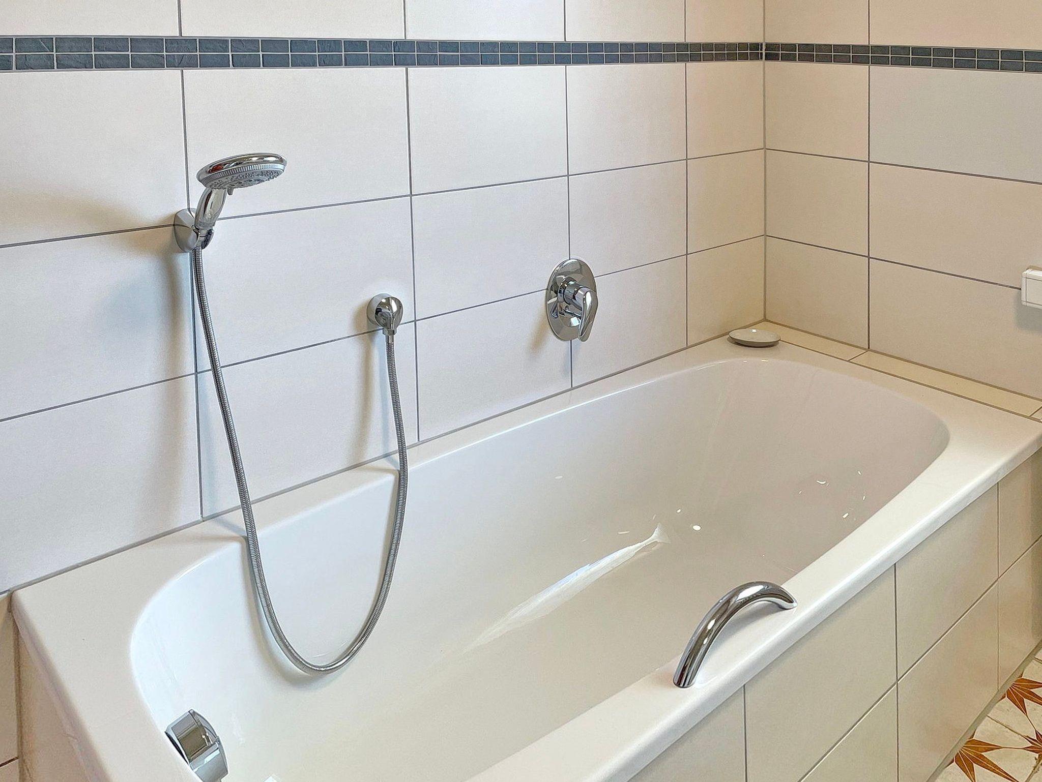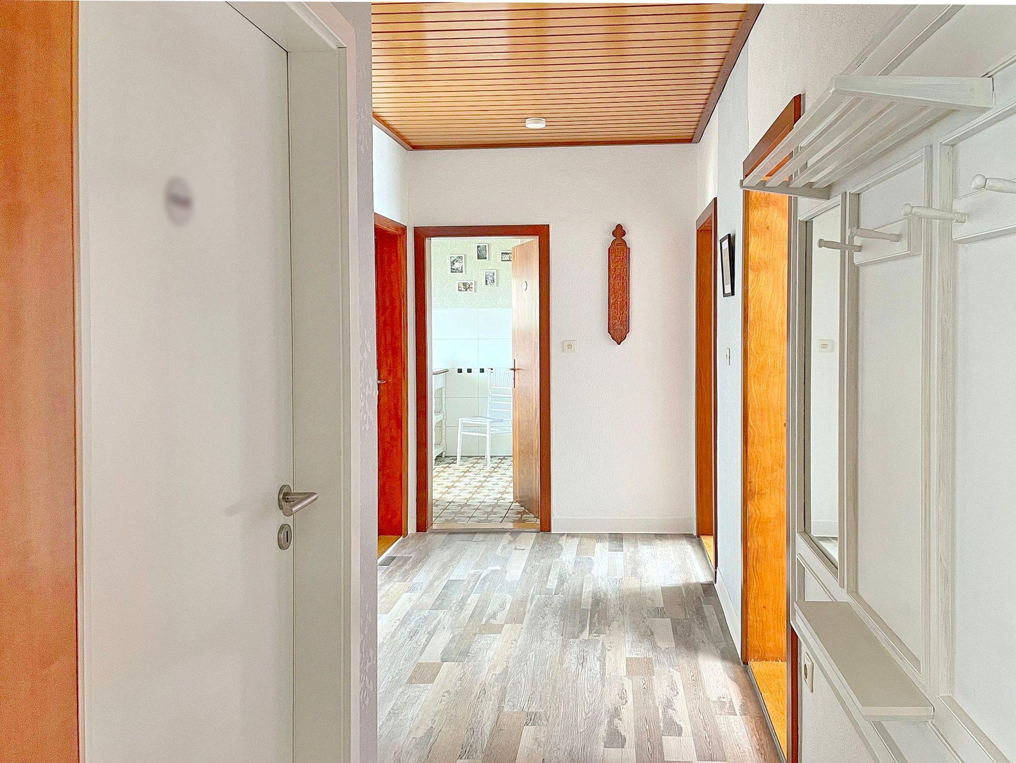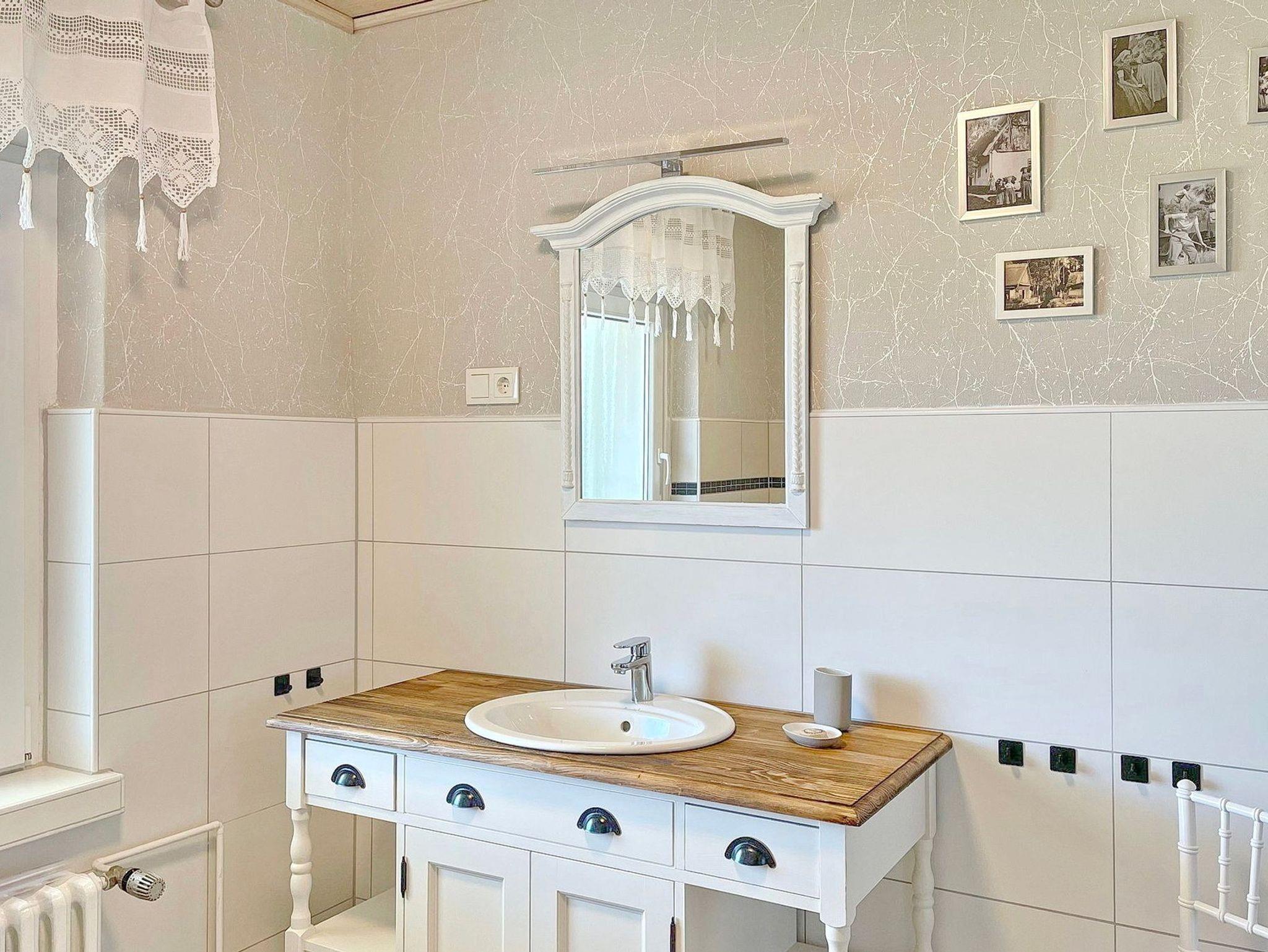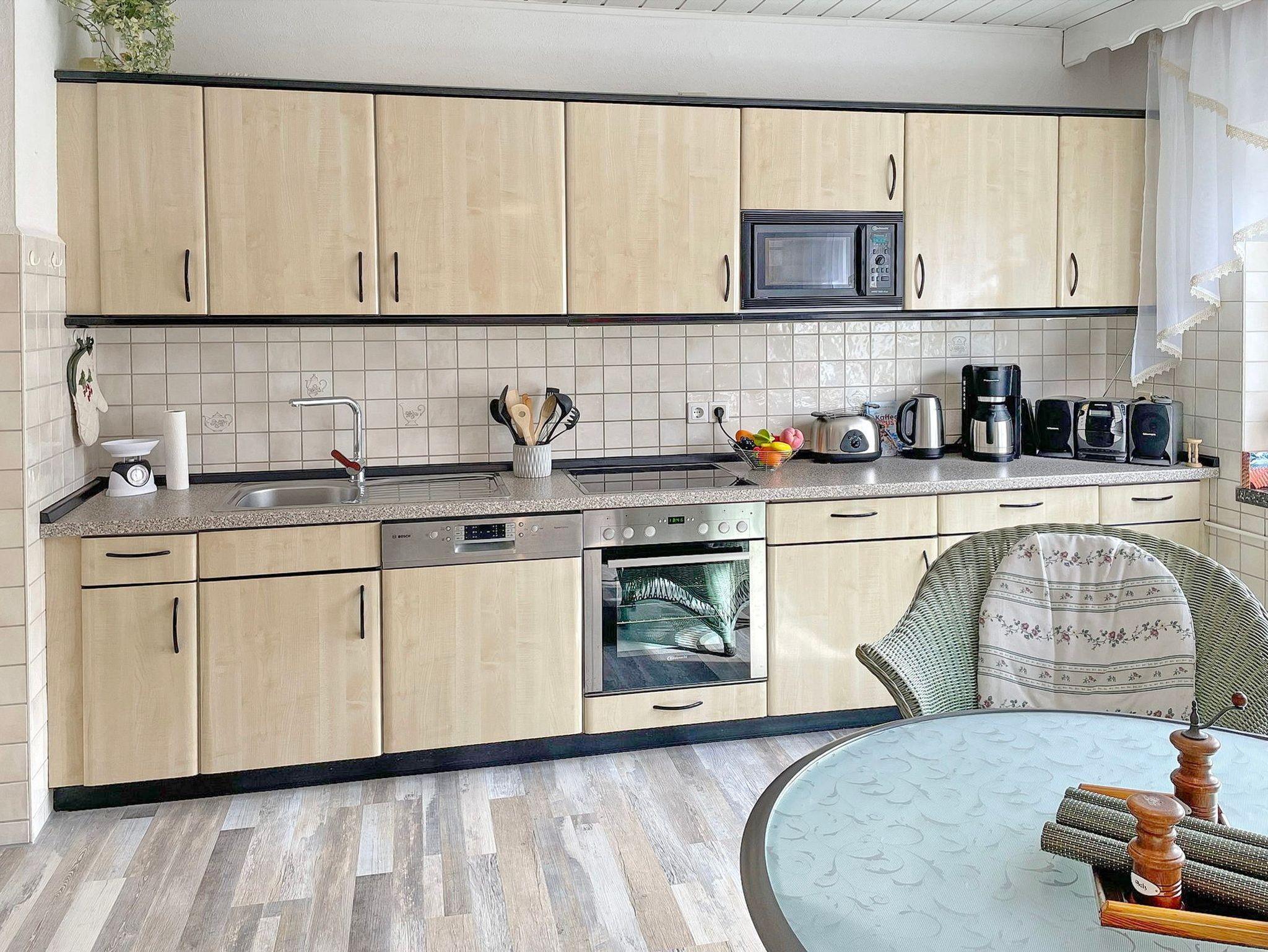 Über den Seiteneingang Veranda gelangen Sie zum Hauseingang. Sie gehen rechts die Treppe hoch zu Ihrer Ferienwohnung. Sie befindet sich im Obergeschoss. Der kleine Flur ist der Zugang zu allen Räumen. Somit ist jeder Wohnbereich separat. Im großzügigen Wohn- und Schlafzimmer haben Sie viel Platz und Ruhe. Jeder findet ein Plätzchen zum Ausruhen auf dem Sofa und können Fernsehen auf dem Flachbild-TV. Im Schlafbereich befindet sich ein Doppelbett (1,80 m x 2,00 m ). Im Kinderzimmer dürfen sich die kleinen Mitreisenden sich so richtig wohl fühlen. Das Zimmer bietet viel Platz, mit Spielsachen, Büchern, einer Couch, Flachbild-TV und zahlreiche Kinderbücher. Die Küche ist vollkommen ausgestattet mit allen Utensilien und Geräten, die Sie zum Kochen und Essen zubereiten brauchen. In der Sitzecke können Sie alle Mahlzeiten einnehmen. Das Bad bietet Ihnen eine Badewanne, Dusche und WC.