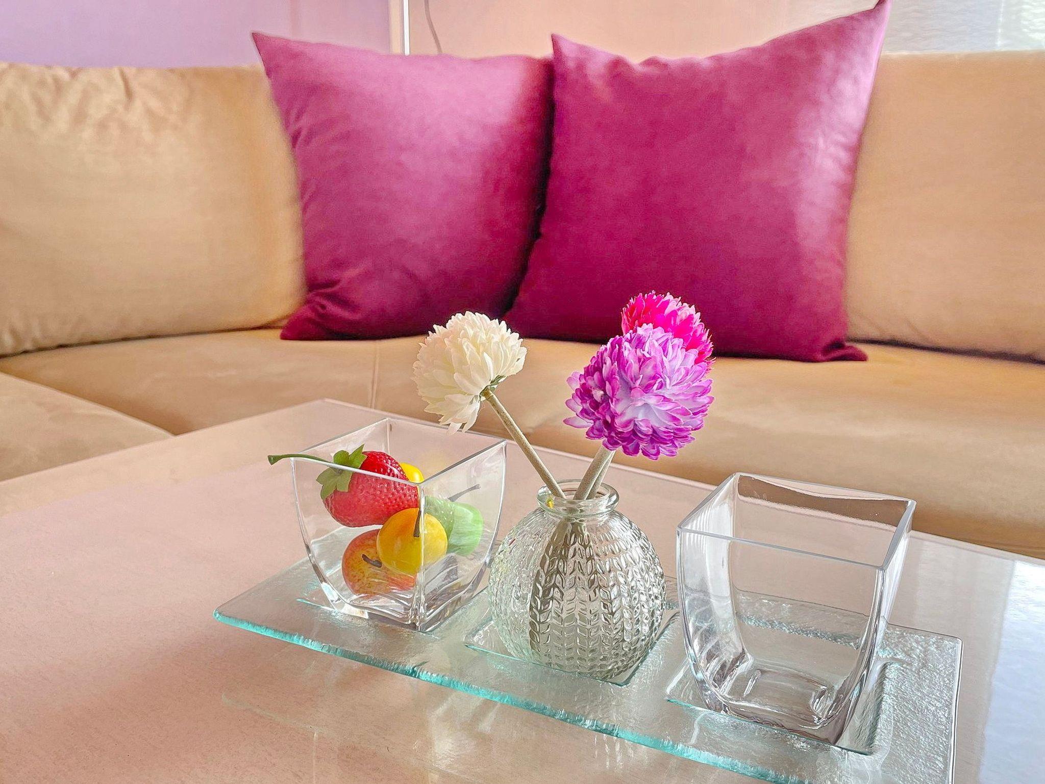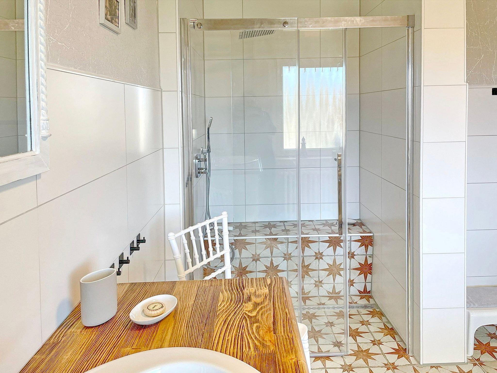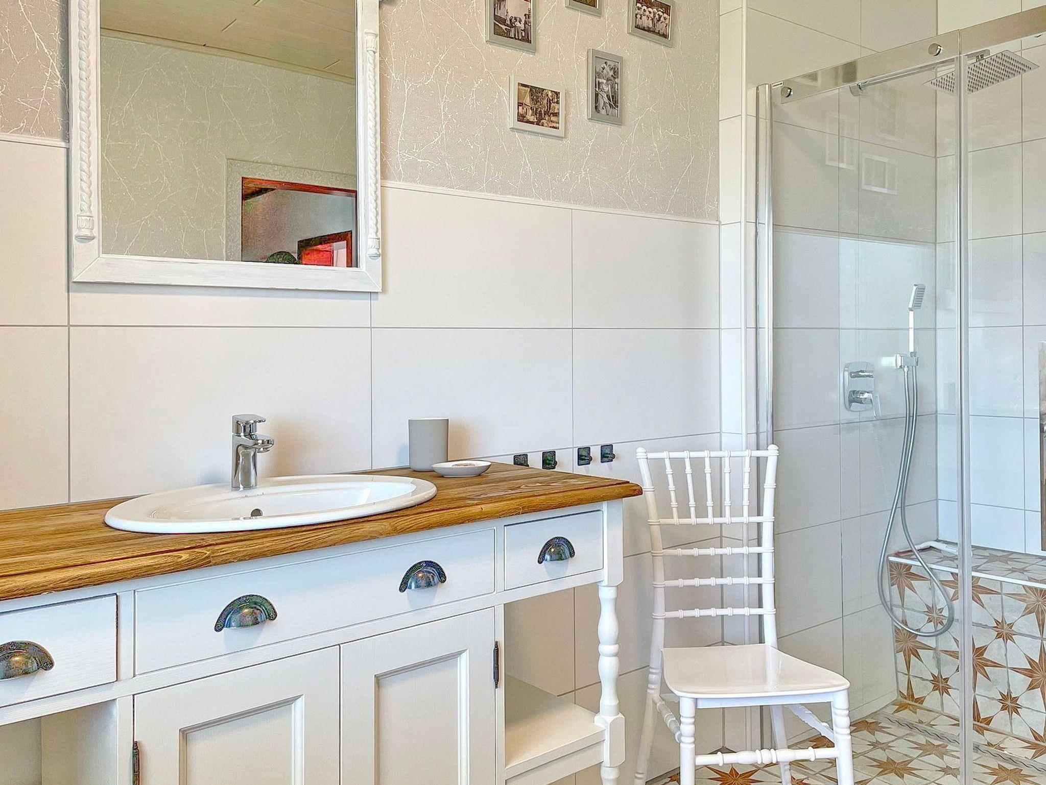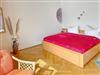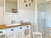 Über den Seiteneingang Veranda gelangen Sie zum Hauseingang. Sie gehen rechts die Treppe hoch zu Ihrer Ferienwohnung. Sie befindet sich im Obergeschoss. Der kleine Flur ist der Zugang zu allen Räumen. Somit ist jeder Wohnbereich separat. Im großzügigen Wohn- und Schlafzimmer haben Sie viel Platz und Ruhe. Jeder findet ein Plätzchen zum Ausruhen auf dem Sofa und können Fernsehen auf dem Flachbild-TV. Im Schlafbereich befindet sich ein Doppelbett (1,80 m x 2,00 m ). Im Kinderzimmer dürfen sich die kleinen Mitreisenden sich so richtig wohl fühlen. Das Zimmer bietet viel Platz, mit Spielsachen, Büchern, einer Couch, Flachbild-TV und zahlreiche Kinderbücher. Die Küche ist vollkommen ausgestattet mit allen Utensilien und Geräten, die Sie zum Kochen und Essen zubereiten brauchen. In der Sitzecke können Sie alle Mahlzeiten einnehmen. Das Bad bietet Ihnen eine Badewanne, Dusche und WC.
