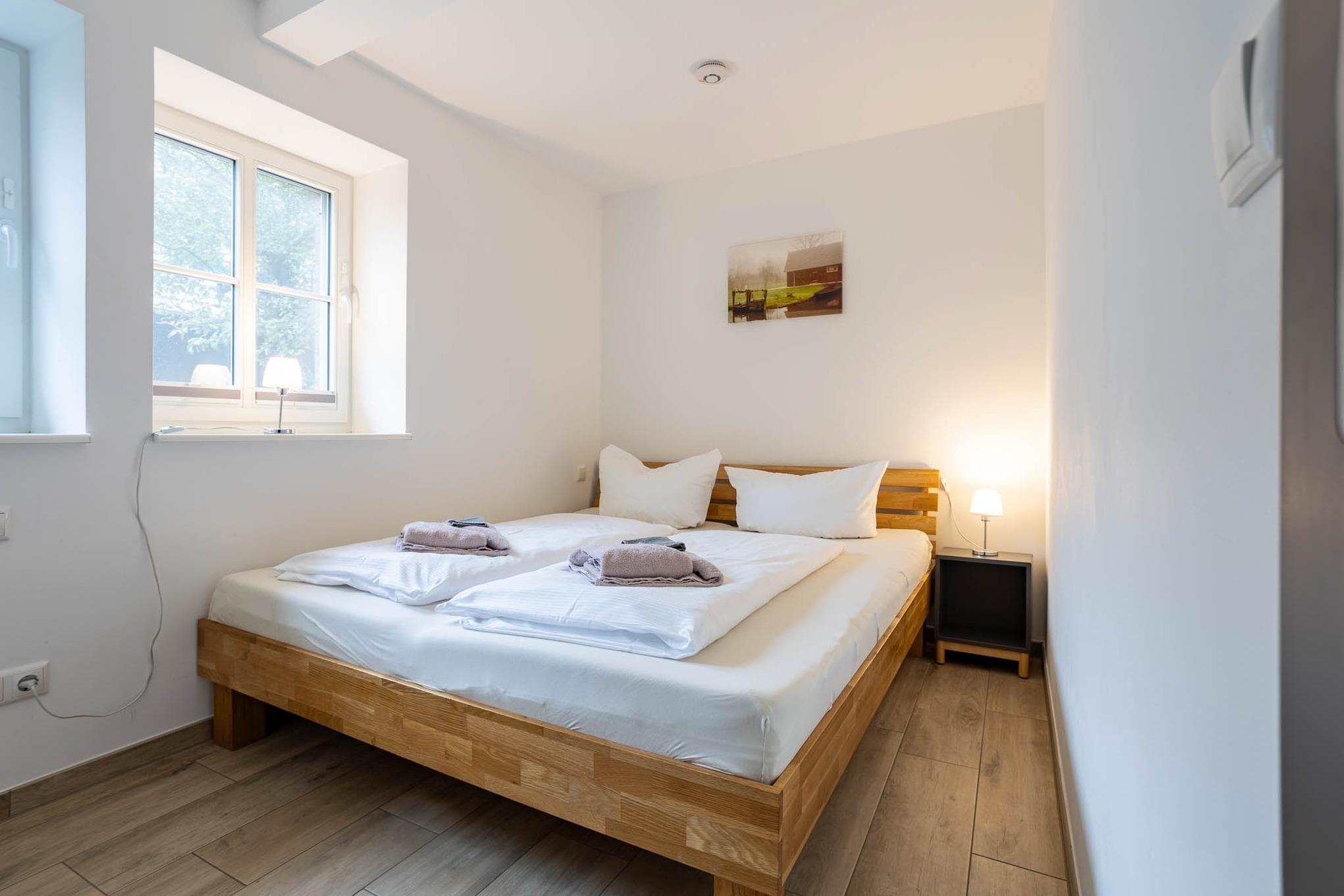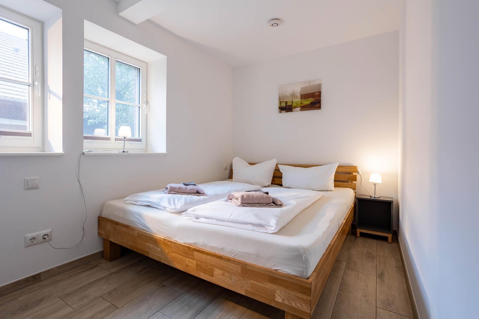 Es ist noch gar nicht lange her, da wurden in der jetzigen 2-Zimmer-Ferienwohnung noch Kartoffeln, Futterrüben und das Eingeweckte aufbewahrt. Jetzt ist die Remise eine gemütliche Ferienwohnung für zwei Personen. Auf etwa 30 qm befinden sich ein Schlafzimmer, ein Duschbad und ein Wohnzimmer mit integrierter Küchenzeile. Direkt vom Wohnzimmer können Sie auf Ihre Terrasse treten und dort den Grill anwerfen. In der kalten Jahreszeit sorgt eine Fußbodenheizung für behagliche Wärme. Natürlich haben Sie auch Zugriff auf das Gäste-WLAN. Einen PKW-Stellplatz finden Sie direkt an der Ferienwohnung. Eine 11 kW Wallbox ist ebenfalls vorhanden und zusätzliche Parkplätze können in fussläufiger Entfernung angemietet werden.