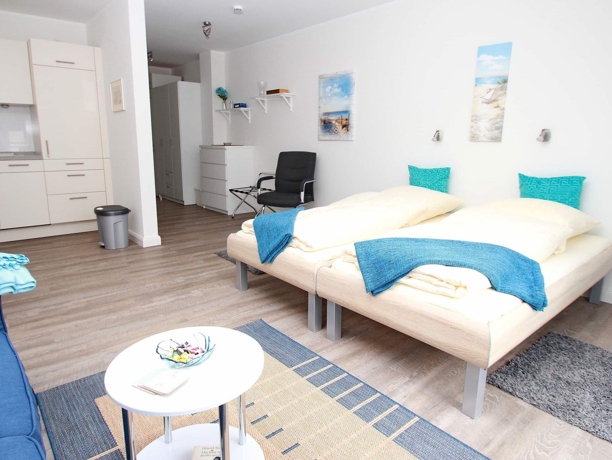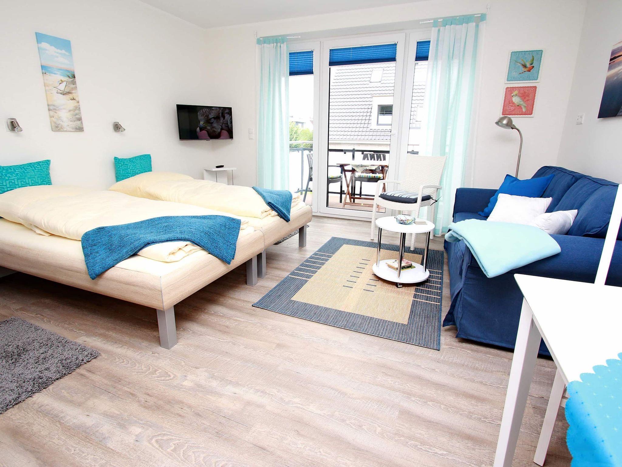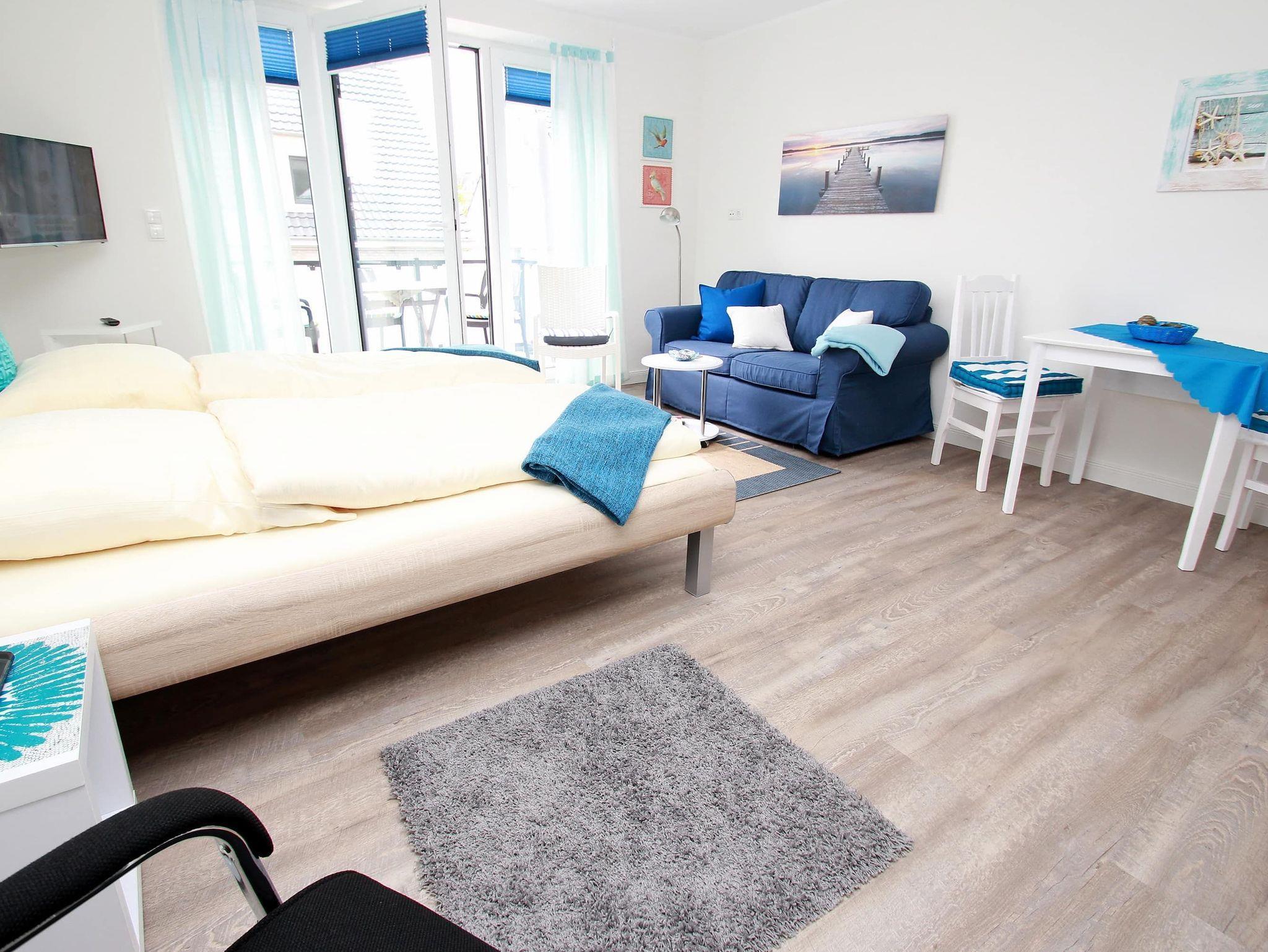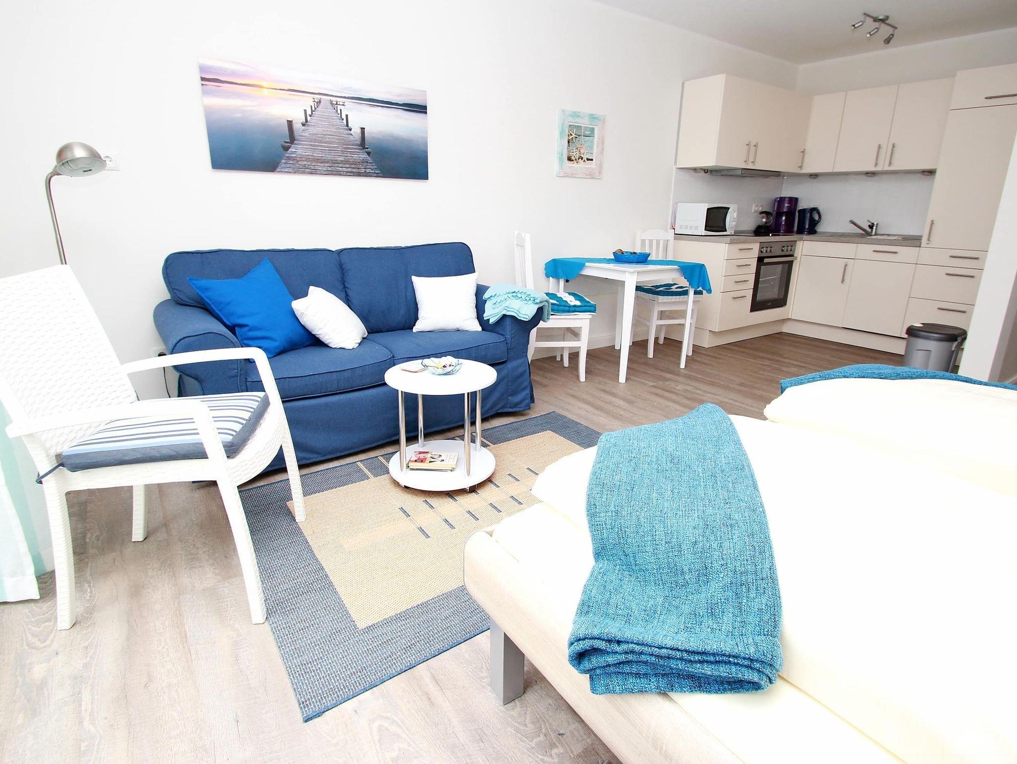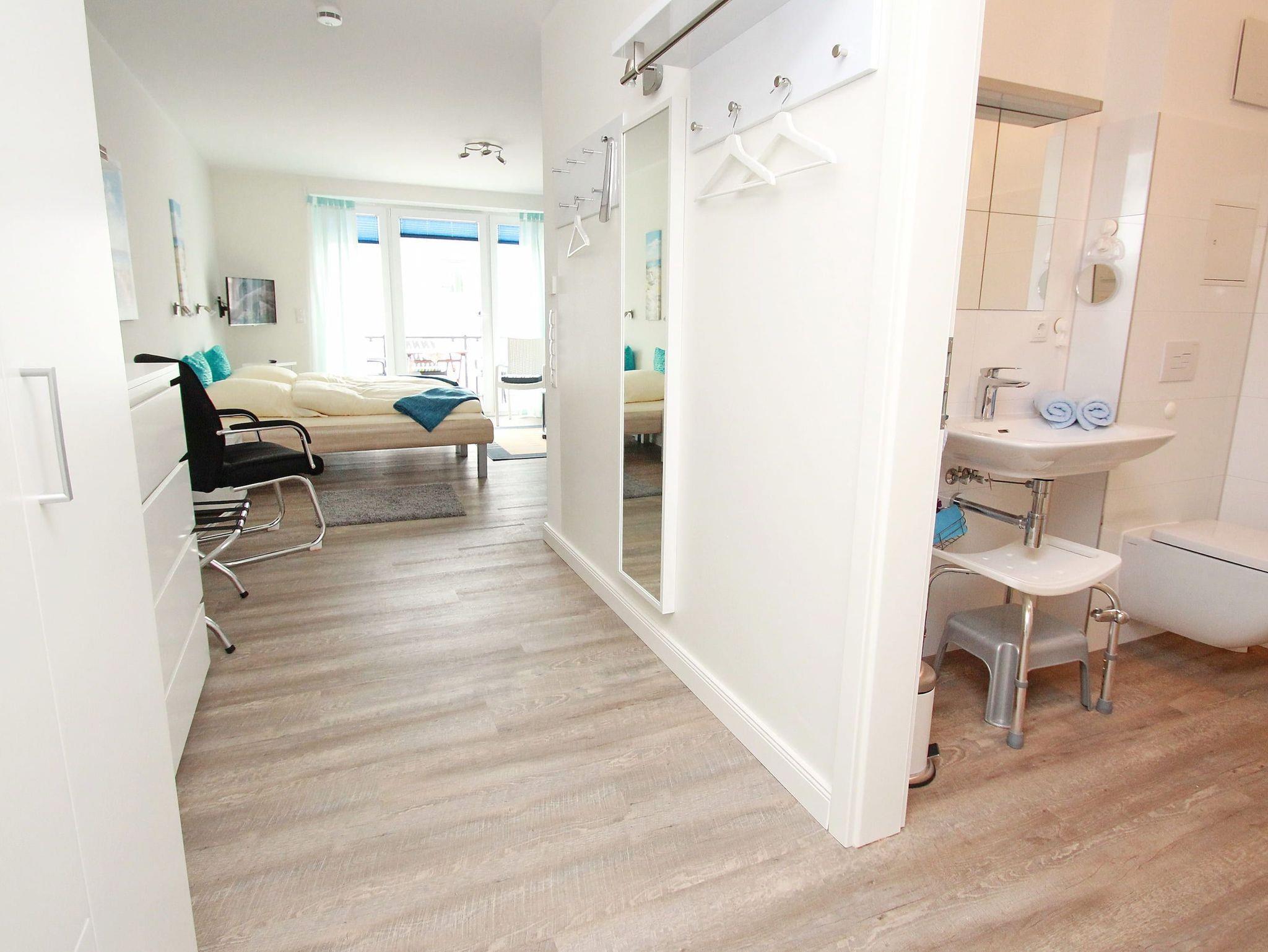 Modernes 1-Zimmer-Appartement in Lübeck-Travemünde nahe Hafen und Strand mit Balkon und gehbehindertenfreundlicher Ausstattung.