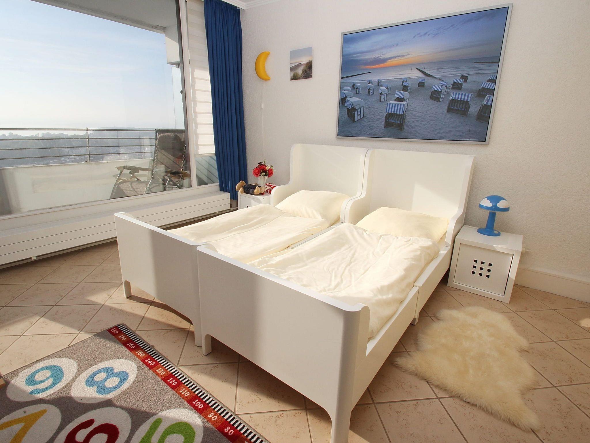 Es erwartet Sie ein extravagantes Feriendomizil der Spitzenklasse, das aus zwei großen Eck-Appartements besteht, ideal für Ihren Familienurlaub oder das Familientreffen. Der Wohnbereich auf der Meerseite beinhaltet eine zweiteiligen Couchgarnitur mit Tisch, zwei Sesseln und einer schönen Kommode. Außerdem befinden sich hier ein luxuriöses Duschbad und zwei Schlafzimmer. Eines ist mit einem Doppelbett (2x 100 cm x 200 cm) und einem Einbaukleiderschrank ausgestattet, das weitere mit einem Doppelbett (160 cm x 200 cm) und einem Einbaukleiderschrank. Auf der Traveseite befinden sich eine moderne Einbauküche, ein großzügiger Essbereich und zwei Schlafzimmer. Eines ist mit einem Doppelbett (2 x 90 cm x 200 cm) und einem Einbaukleiderschrank ausgestattet, das weitere mit zwei längenverstellbaren Kinderbetten (je 80 cm x max. 180 cm) und einem Einbaukleiderschrank. Ein weiteres Bad ergänzt die schöne Wohneinheit. Auf den großen Eckbalkonen zur Ostsee und zur Trave genießen Sie den einmaligen Panoramablick.