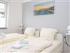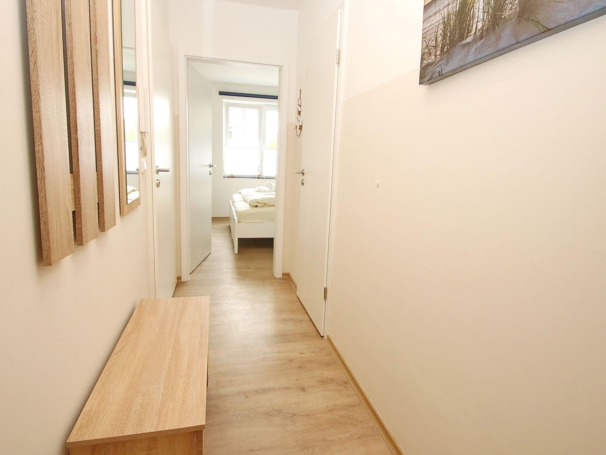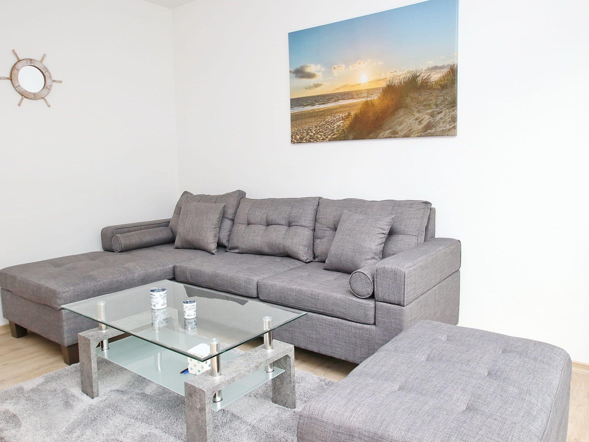 Freuen Sie sich auf diese exklusive Ferienwohnung mit reichlich Komfort. Die Ferienwohnungen im Haus Aaron sowie das Appartementhaus wurden im Jahr 2022 neu erbaut. Im hellen, und modern eingerichteten Wohnzimmer erwartet Sie eine gemütliche Couchgarnitur, einen Esstisch mit eleganten Stühlen, sowie eine komfortable offene Küche mit einem Geschirrspüler. Vom Wohnzimmer gelangen Sie auf den große Sonnen-Balkon mit Ihrem privaten Strandkorb. Vom Flur dieser modernen Ferienwohnung erreichen Sie in das große Schlafzimmer, welches über einen geräumigen Kleiderschrank sowie zwei Einzelbetten (90 cm x 200 cm), diese können aber auch auseinander geschoben werden, verfügt. Im zweiten Schlafzimmer erwartet Sie ebenfalls ein Kleiderschrank und sowie ein Doppelbett (160 cm x 200 cm). Die Ferienwohnung verfügt zusätzlich über zwei moderne Bäder, eins mit Dusche [&] WC und das zweite Badezimmer mit einer Badewanne [&] WC. Genießen Sie Ihren Urlaub in tollen Ambiente und mit exklusiver Ausstattung. Ihren PKW können Sie auf dem großen Grundstück auf der privaten Parkfläche abstellen. Eine Wallbox zum laden von E-Autos ist ebenfalls auf dem Gelände vorhanden (gegen Gebühr buchbar).