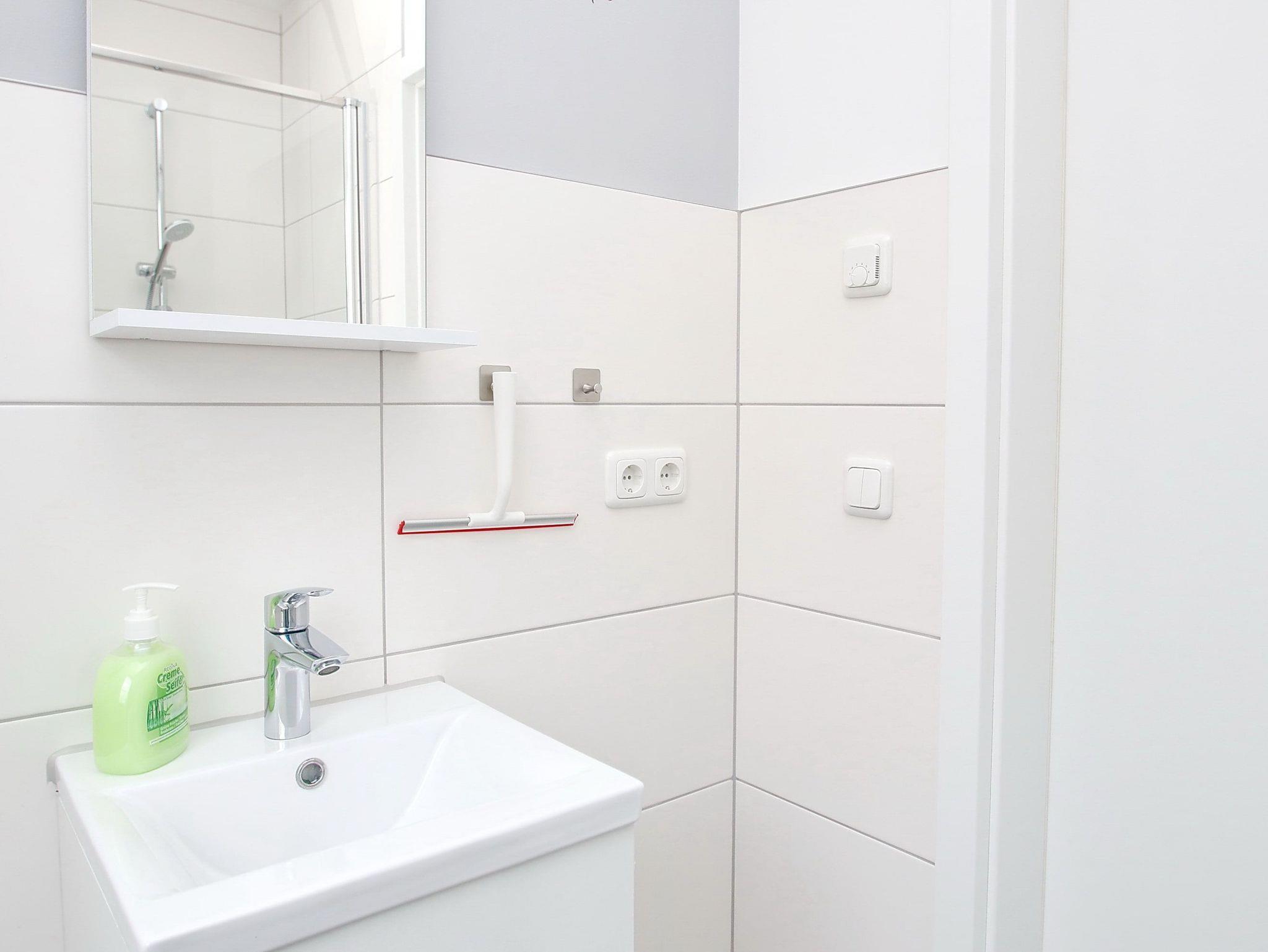 Balkon, Fußbodenheizung, Küchenzeile, 2 Schlafzimmer, Geschirrspüler, 2xBäder (1x Duschbad/WC, 1x Vollbad/WC), Fön, TV, Strandkorb auf dem Balkon, kostenl. W-Lan, inkl. PKW-Außenstellplatz vor dem Haus, Wallbox auf dem Grundstück (gegen Gebühr).