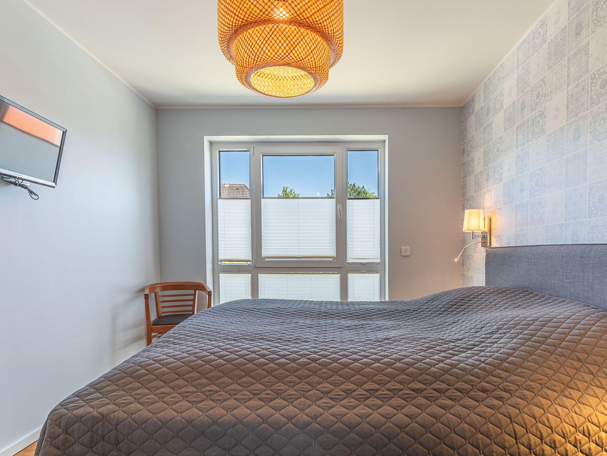 Moderne 3-Zimmer-Ferienwohnung in Lübeck-Travemünde, 180 m vom Strand, mit zwei Balkonen und Tiefgaragenstellplatz.