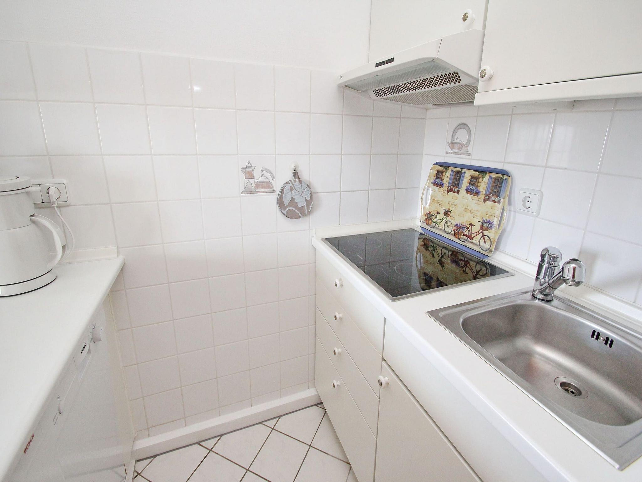Modern, komfortabel und geschmackvoll ist dieses helle Appartement für einen erholsamen Urlaubsaufenthalt eingerichtet. Im Wohnraum steht eine bequeme Ledercouch mit passenden Sesseln, ein Tisch, eine helle Anrichte und ein schöner Glasvitrinen Schrank. Im großen Schlafzimmer befinden sich ein Doppelbett (2x 90 cm x 200 cm) und eine geräumige Kleiderschrankwand. Eine Sitz-/Schlafcouch (120 cm x 200 cm) in der Wohnraumnische lädt auch zum Ausruhen, Lesen und Relaxen ein. Die vom Flur abgehende Küche und der davor gelegene Essplatz sind durch eine große und überraschend praktische Durchreiche verbunden. Das Bad geht vom Flur ab. Liebevolle Dekorationen, moderne Bilder sowie geschmackvolle Gardinen mit Verdunklungsmöglichkeit sorgen dafür, dass Sie sich wohlfühlen werden. Auch Ihr Vierbeiner ist in diesem Appartement herzlich willkommen. Einen traumhaften Meerblick auf die Lübecker Bucht genießen Sie vom großen Balkon.