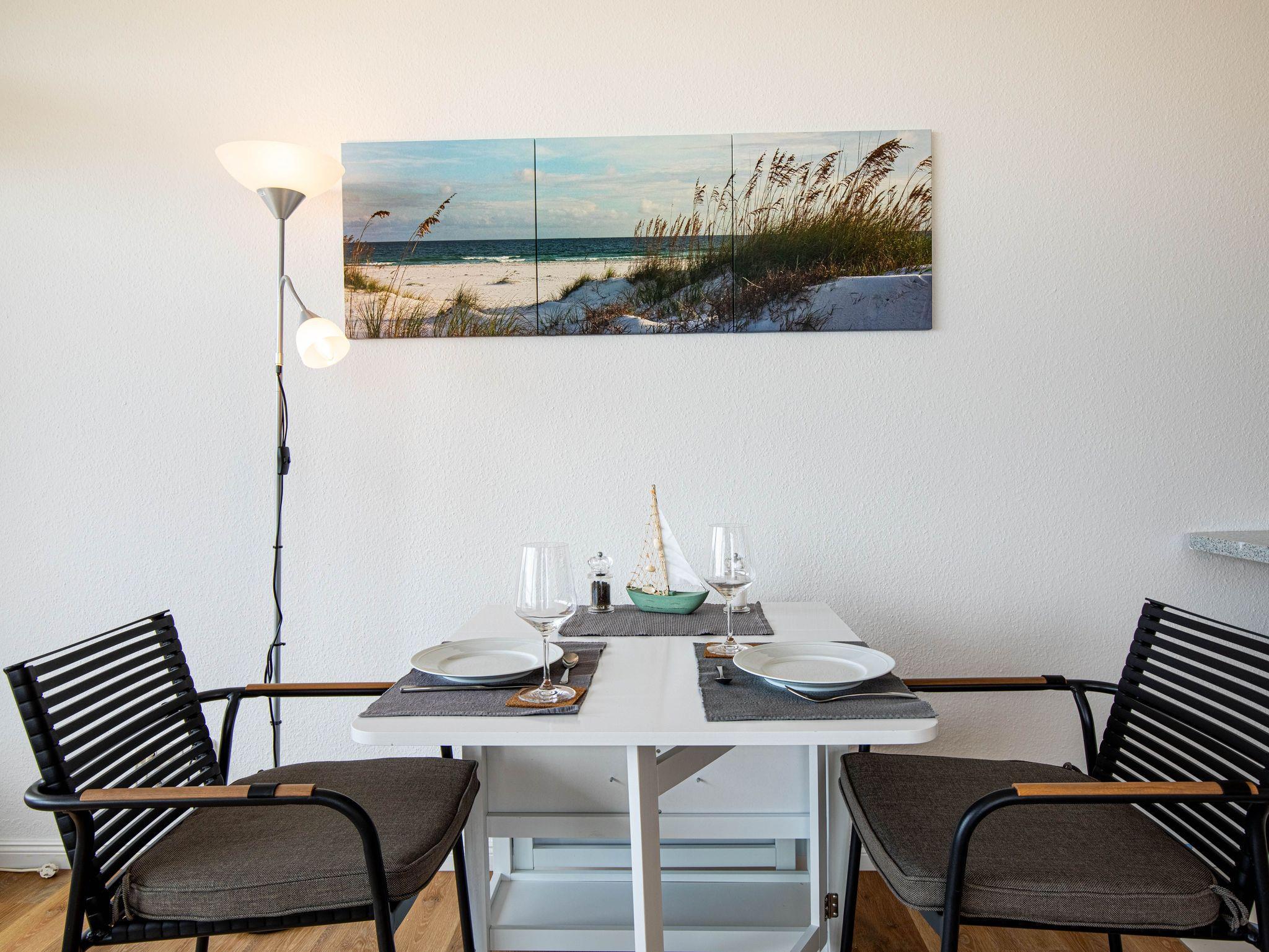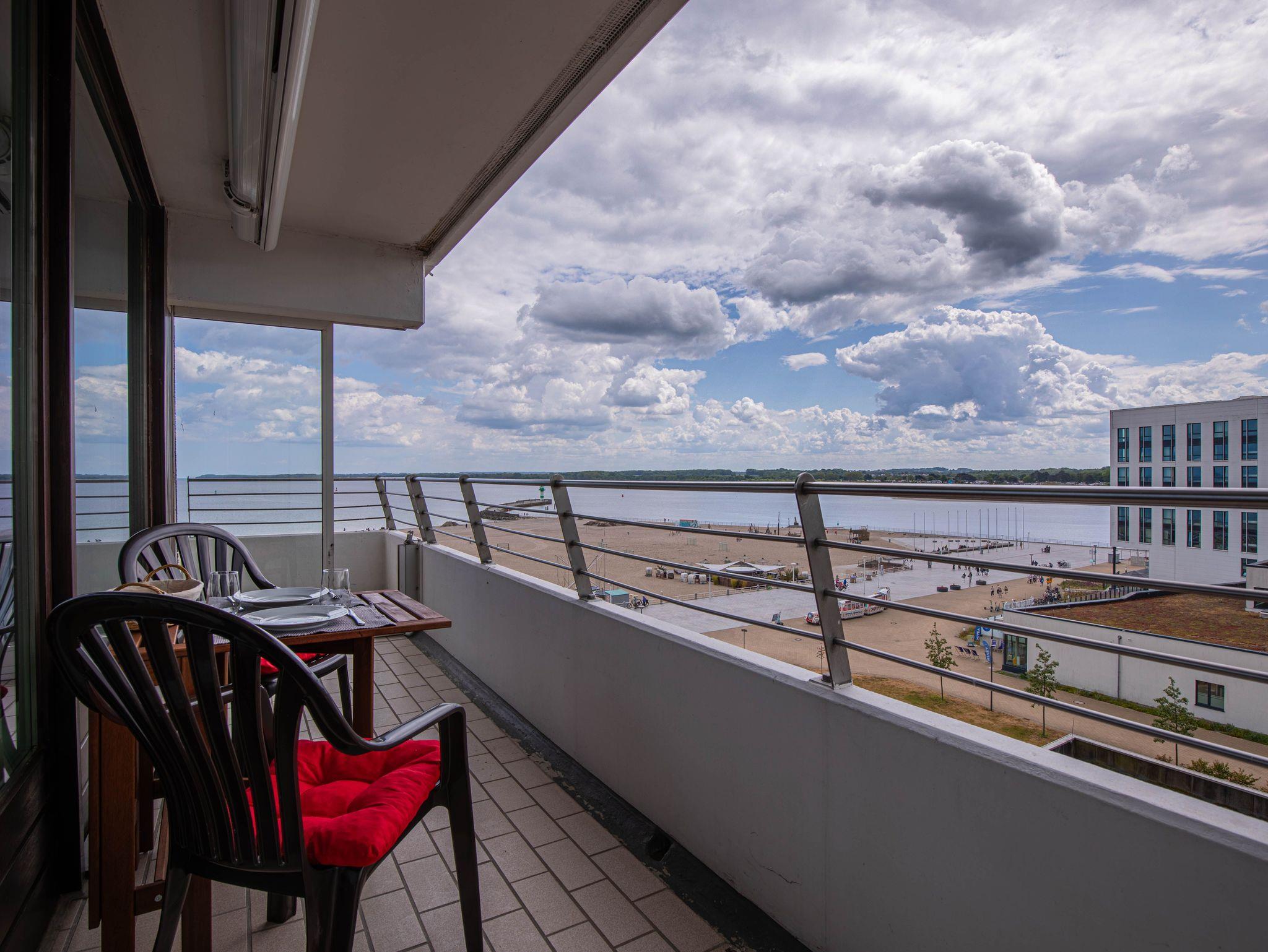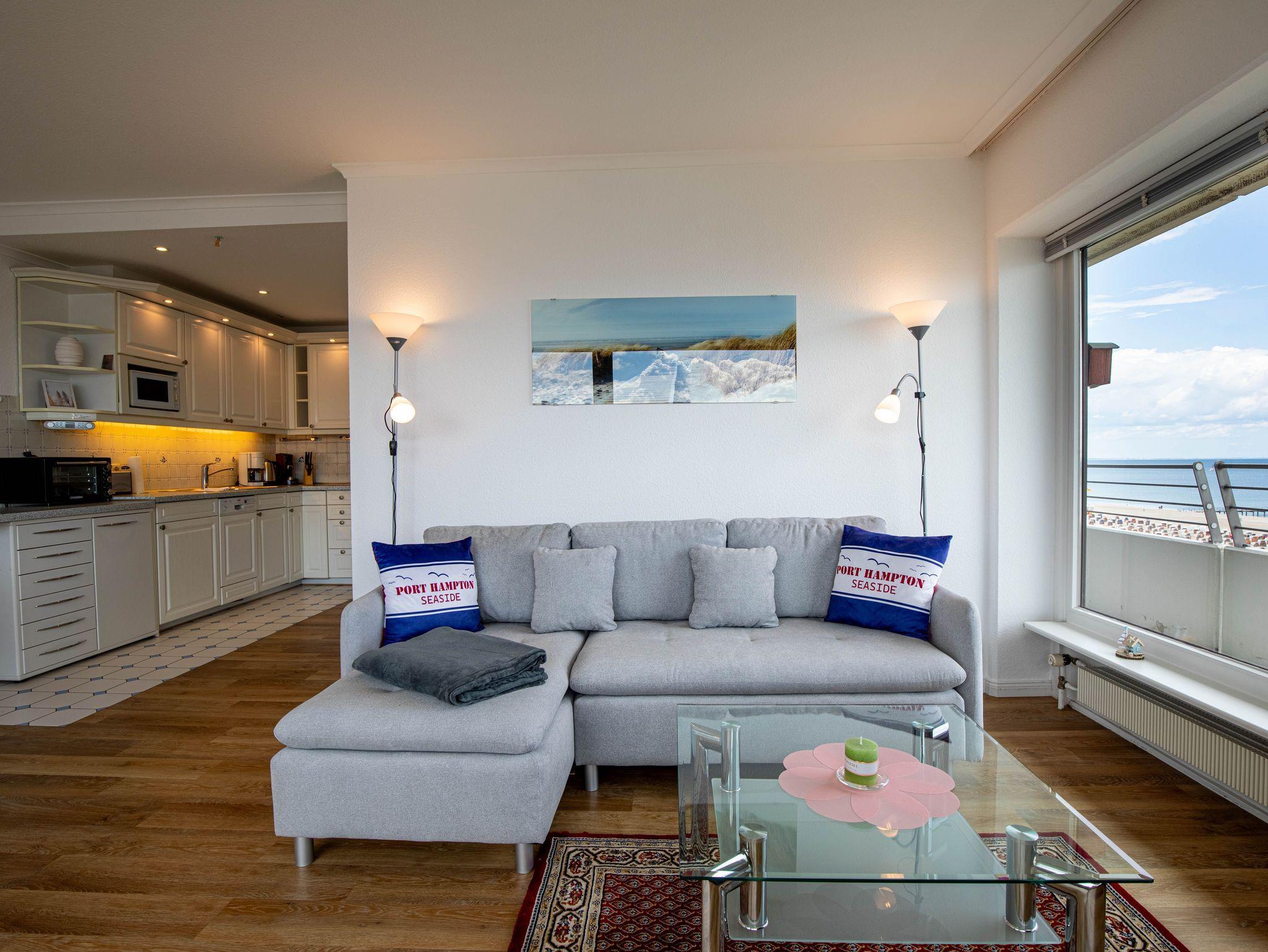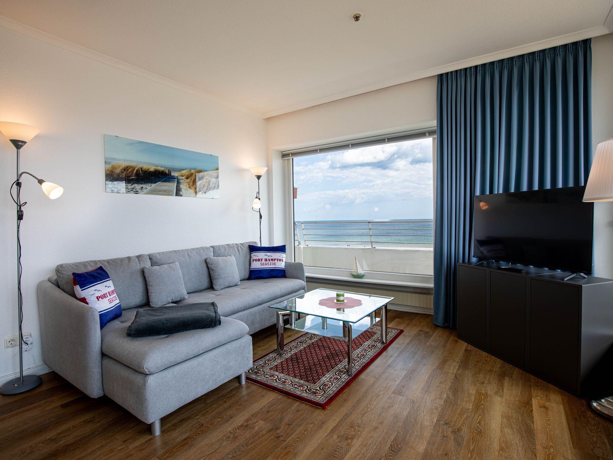 Genießen Sie Meer- und Traveblick in diesem komfortablen 2-Zimmer-Eck-Appartement direkt am Strand in Lübeck-Travemünde.