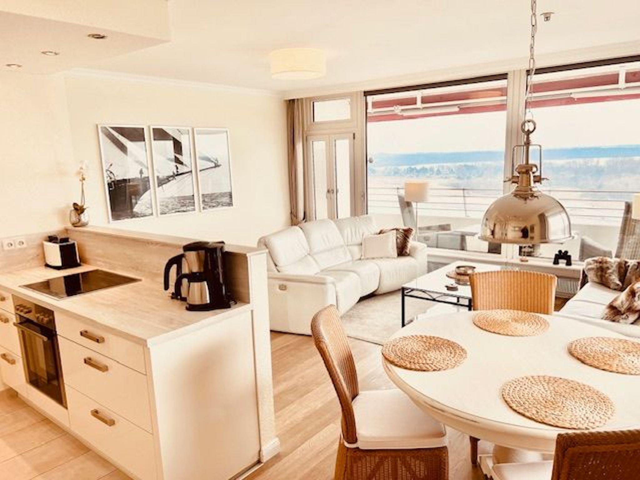 Elegantes 2-Zimmer-Appartement mit traumhaftem Blick auf die Trave und direktem Strandzugang.