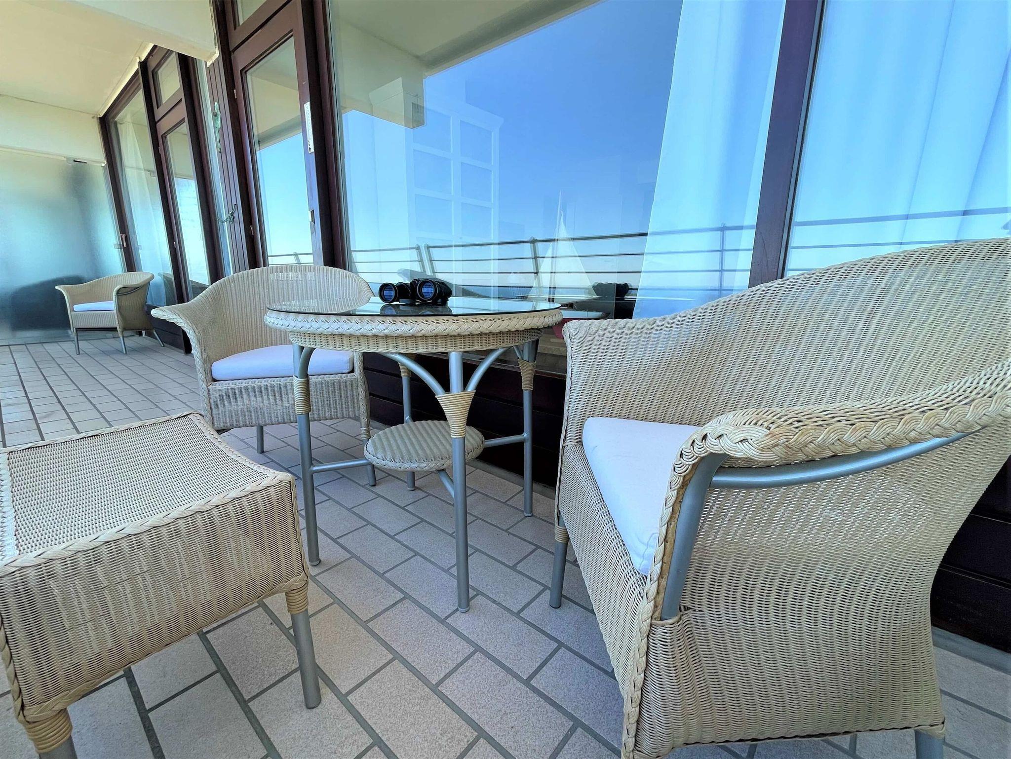 Moderne 2-Zimmer-Ferienwohnung in Lübeck-Travemünde mit Balkon und atemberaubendem Meerblick direkt am Strand.