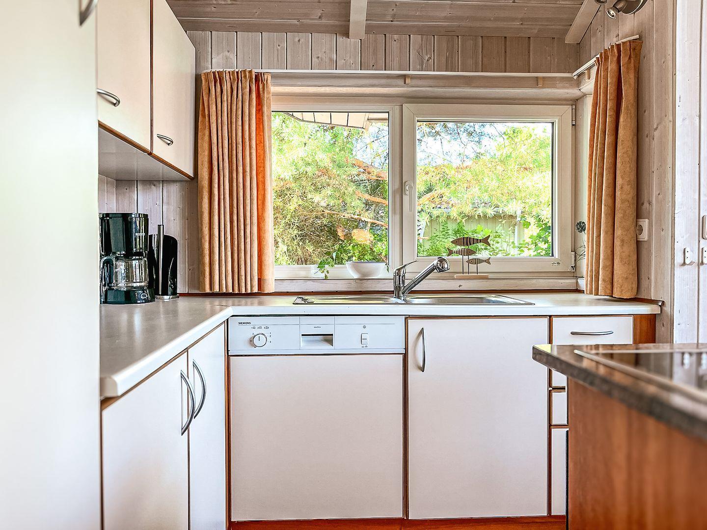 Die Kücheninsel schafft eine lässige Stimmung innerhalb des Ferienhauses. Hier findest Du alles, was du für die Zu- und Nachbereitung leckerer Mahlzeiten benötigst: