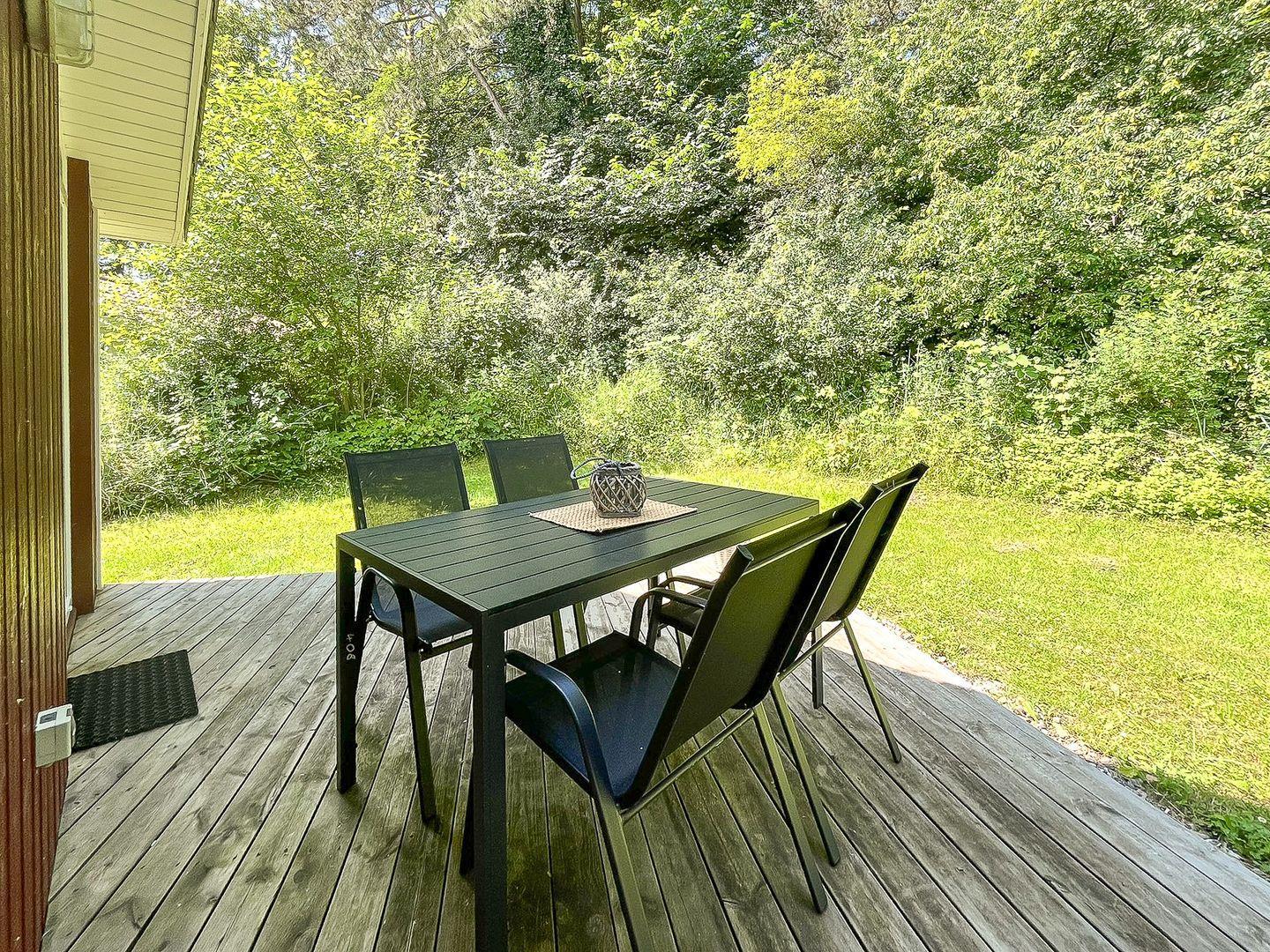 Die private Terrasse mit Gartenmöbeln, Sonnenschirm und Blick ins Grüne lädt zum Frühstück in der Morgensonne oder zum entspannten Grillabend ein – ein Holzkohlegrill steht Dir zur Verfügung! Für gemütliche Stunden an kühleren Tagen sorgt der Bioethanolofen mit wohliger Wärme.