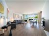 Der lichtdurchflutete Wohnbereich lädt mit Sofa, Sesseln, Flachbild-TV, HiFi-Anlage und einem stimmungsvollen Bioethanolkamin zum Entspannen ein. Durch die großen Panoramafenster und direkt von der Couch aus hast Du einen außergewöhnlich schönen Meerblick.