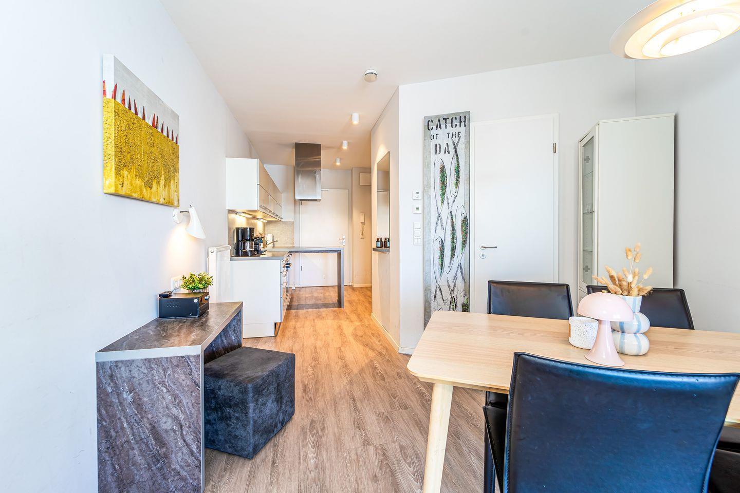 Auf rund 52 m² im Hochparterre findest Du ein gemütliches Zuhause mit Wohn-Essbereich, offener Küche, separatem Schlafzimmer, einem modernen Badezimmer sowie einer überdachten Terrasse mit außergewöhnlich schönem Blick auf die Ostsee.