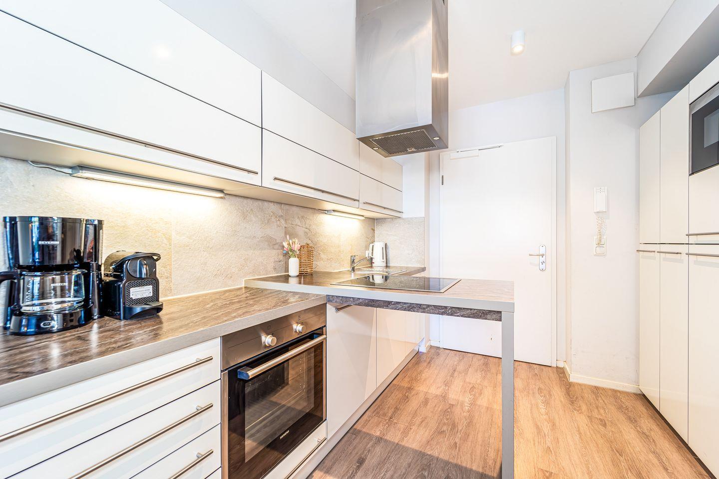 Die offene Küche ist bestens ausgestattet mit 4-Platten-Herd, zusätzlichem Wok-Kochfeld, Backofen, Kühlschrank mit Gefrierfach, Geschirrspüler, Mikrowelle, Toaster, Wasserkocher, Kaffeemaschine und Nespresso-Maschine. Natürlich stehen Dir ausreichend Geschirr, Besteck und Kochutensilien zur Verfügung, sodass Du Dich ganz nach Deinen Wünschen selbst versorgen kannst.