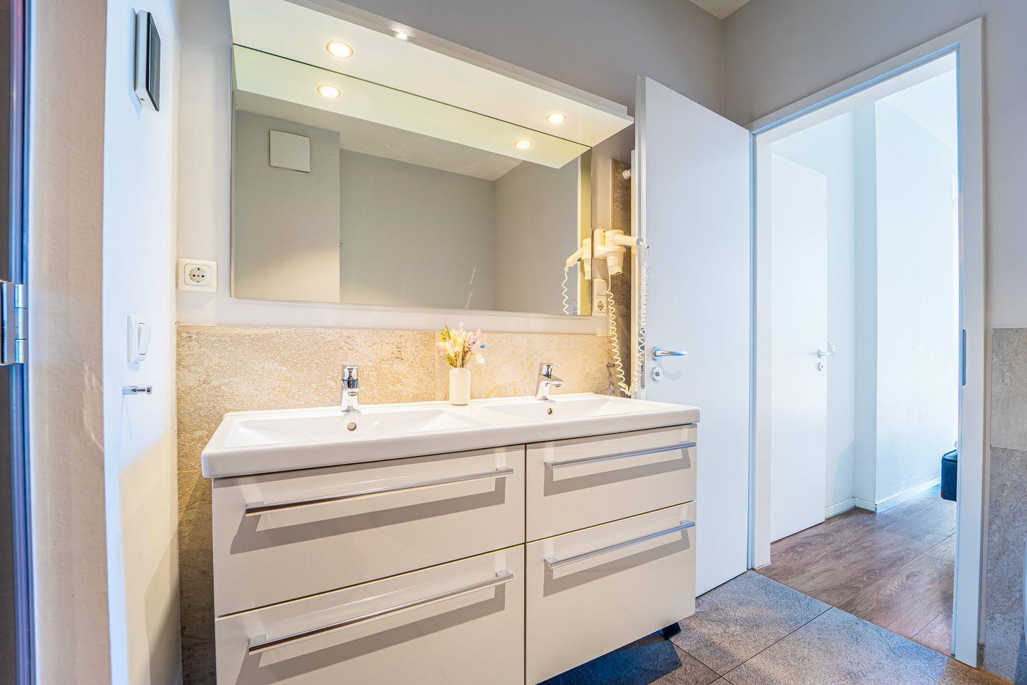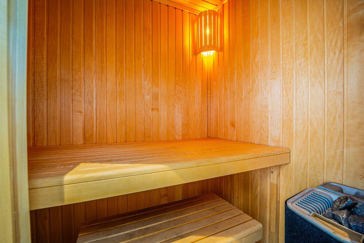 Das zweite Badezimmer verfügt über eine großzügige bodengleiche Dusche, WC, Föhn und eine eigene Sauna – perfekt, um nach einem Strandtag zu entspannen.