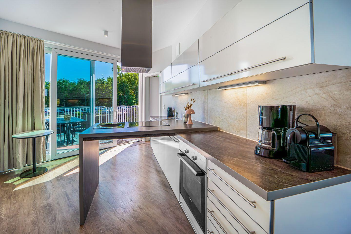 Die offene Küche ist umfassend ausgestattet: Neben einem 4-Platten-Herd findest Du ein zusätzliches Wok-Kochfeld, Backofen, Kühlschrank mit Gefrierfach, Geschirrspüler, Mikrowelle, Toaster, Wasserkocher, Kaffeemaschine und Nespresso-Maschine. Geschirr, Besteck und Kochutensilien sind selbstverständlich vorhanden.