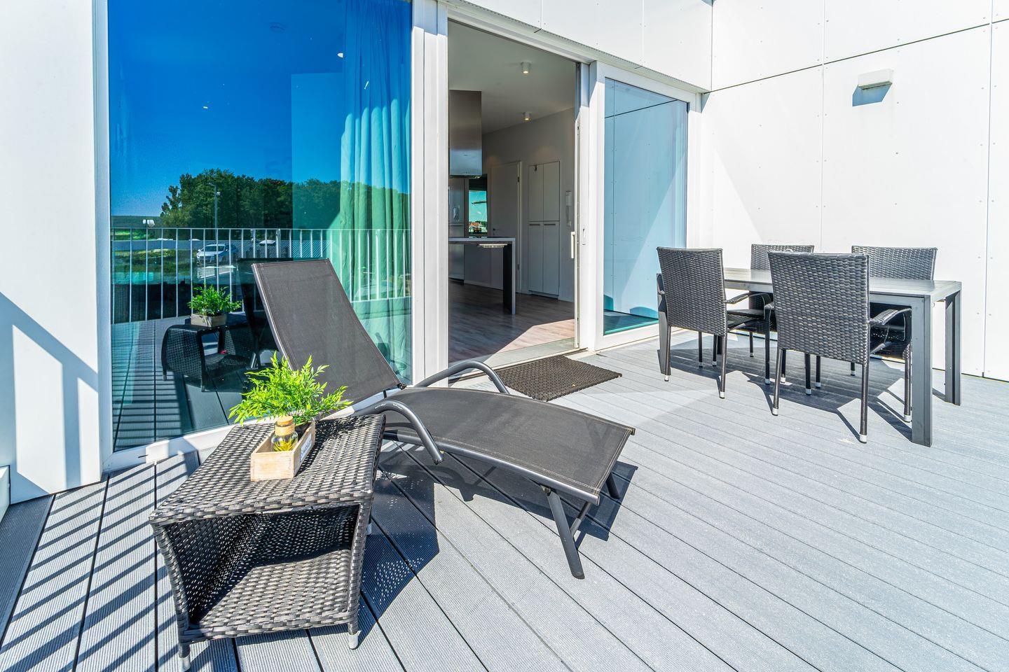 Die Dachterrassen bieten Dir einen einzigartigen Rundumblick: Auf der einen Seite schaust Du weit über den feinsandigen Strand und die Ostsee, auf der anderen Seite über den Segelhafen, die Travemündung, das Museumsschiff „Passat“ sowie die vorbeiziehenden Skandinavienfähren – ein Panorama, das seinesgleichen sucht. Mit Gartenmöbeln und Sonnenliegen ausgestattet, sind sie der perfekte Ort, um die frische Seeluft zu genießen, Sonne zu tanken und den unvergleichlichen Weitblick auszukosten.