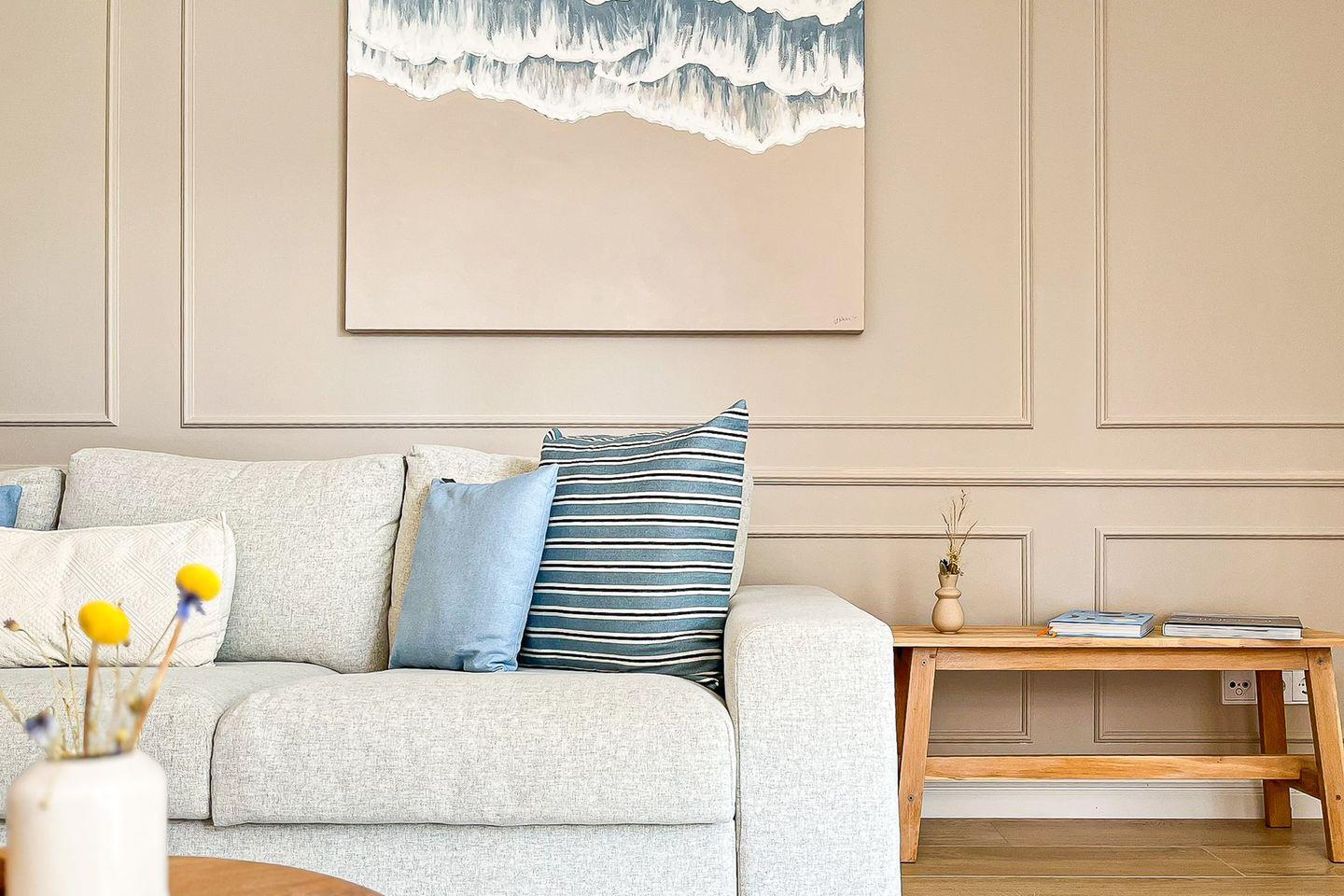 Die Wohnung überzeugt durch ihre moderne, geschmackvolle Einrichtung und lichtdurchflutete Räume.