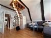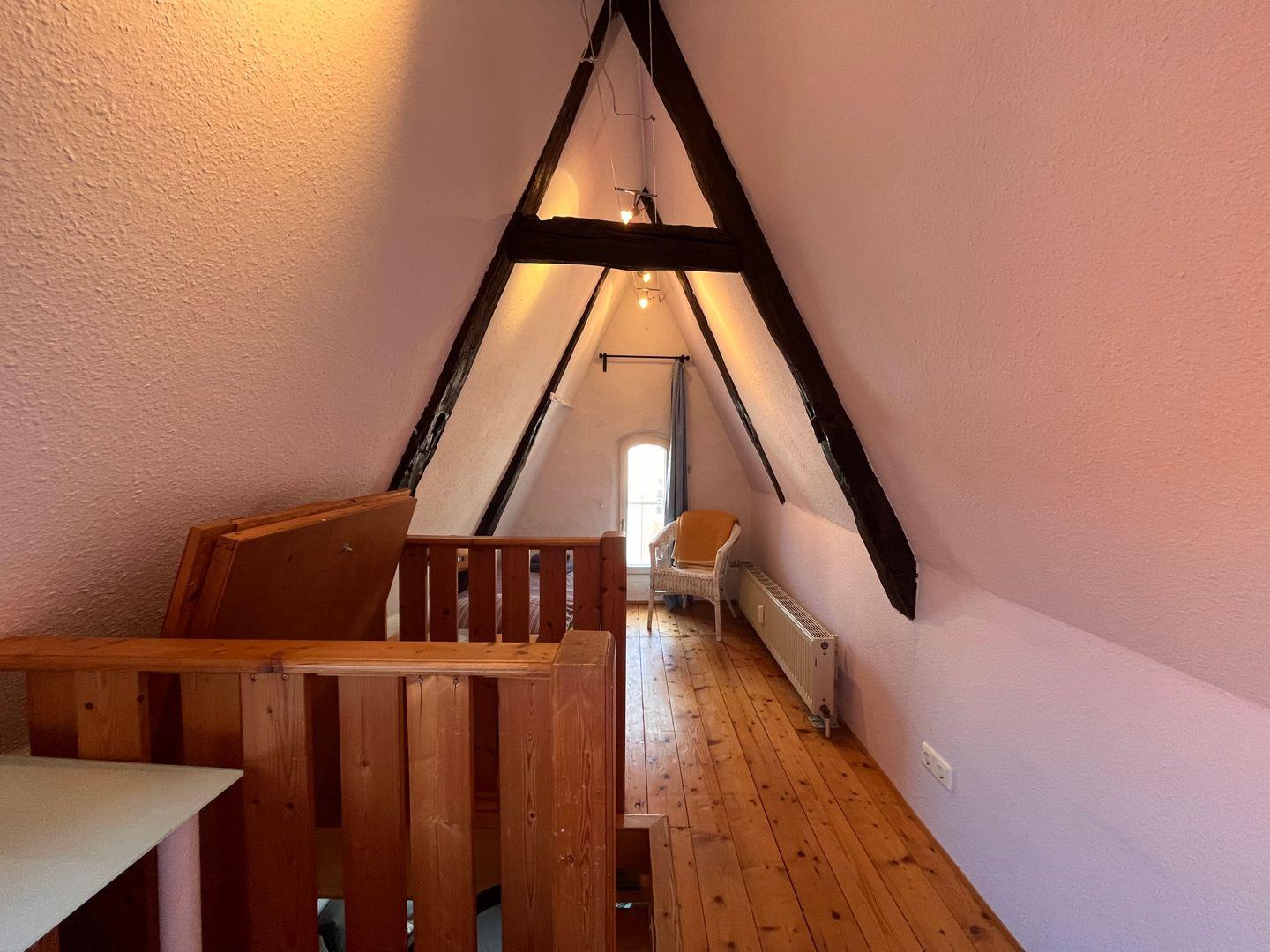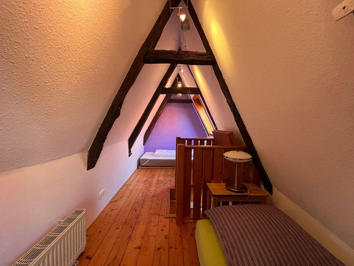 Die beiden separaten Schlafzimmer sind ruhig gelegen. Das Schlafzimmer im Spitzboden ist über eine steile Treppe erreichbar und hat zwei Einzelbetten. Das andere Schlafzimmer hat eine Doppelbett. Für Kleinkinder und Babys ist dies nicht geeignet! Auch für Menschen mit einer Gehbehinderung ist die Wohnung nicht gut zu erreichen, da der Treppenaufgang auch sehr steil ist!