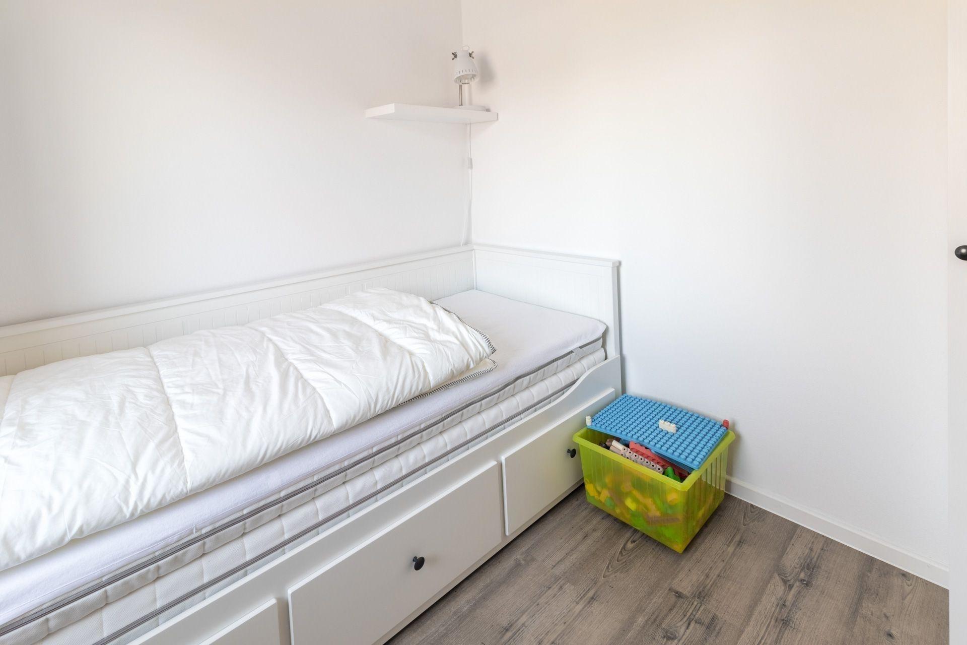 - ein Schlafraum mit Einzelbett, welches zum Doppelbett umgebaut werden kann und kleiner Spielecke für Kinder (mit Fenster)