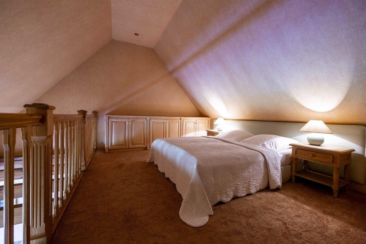 Das Ferienappartement ist gemütlich eingerichtet und hat zwei großzügige Schlafbereiche. Ein Zimmer mit zwei Einzelbetten sowie der offene Schlafbereich im ausgebauten Dachgeschoss. Das Appartement verfügt über einen großzügigen Wohn- und Essbereich mit voll ausgestatteter Einbauküche sowie allen elektrischen Geräten. Dort finden sich auch ein Esstisch, eine Couch mit Sesseln und ein moderner Flachbild-TV. Das Bad verfügt über eine Badewanne mit Dusche.
