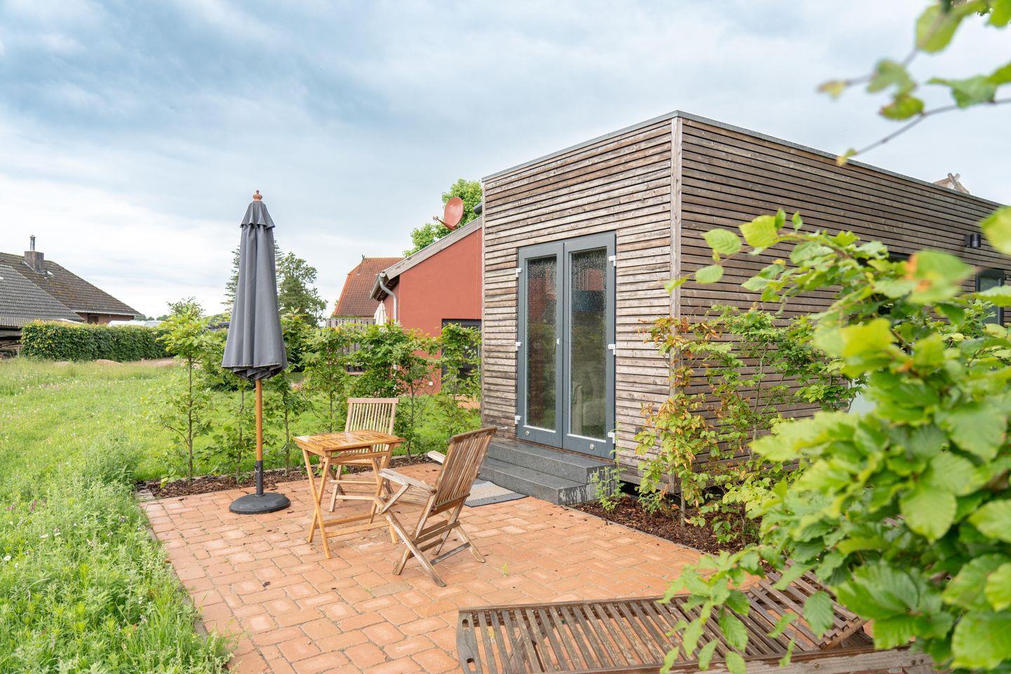 Das im Jahr 2023 gebaute 25 qm große 2-Zimmer Tiny House (Nichtraucher) bietet Platz für zwei Personen. An den Wohnbereich grenzt die Terrasse mit Gartenmöbeln an. Von dort kannst du einen atemberaubenden Südblick über die angrenzenden Pferdewiesen genießen. Auf dem Grundstück stehen Stellplätze für dein Auto zur Verfügung.