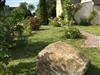 Vor dem Nichtraucherhaus ist ein großer Sitzbereich mit entsprechenden Gartenmöbeln angelegt. Von dort erreicht man den großen naturbelassenen Garten mit altem Baumbestand und vielen Rasenflächen. Im hinteren Teil des vollständig eingefriedeten Grundstücks befinden sich ein PKW-Stellplatz (Carport). Das Ferienhaus ist eine Haushälfte.