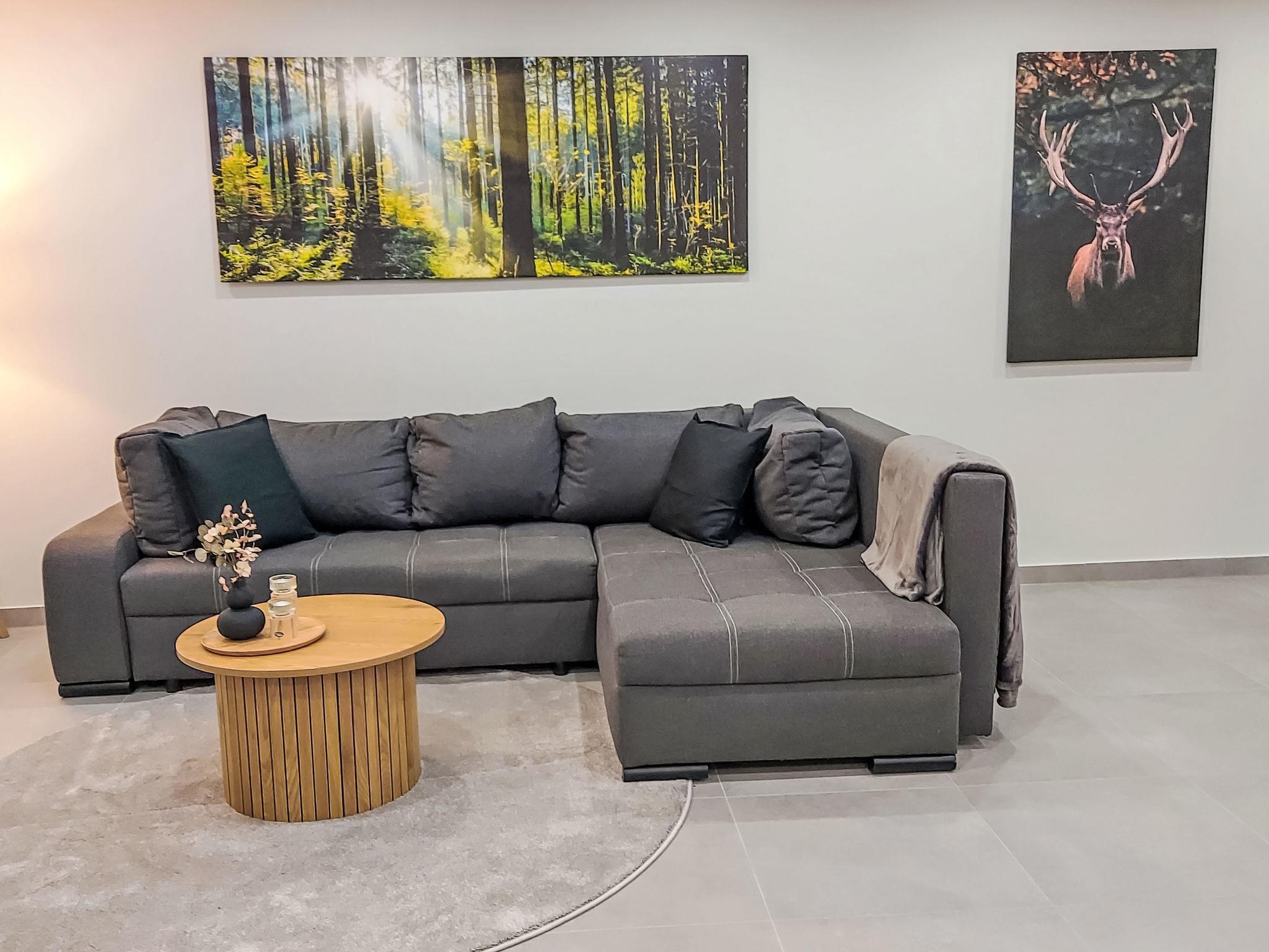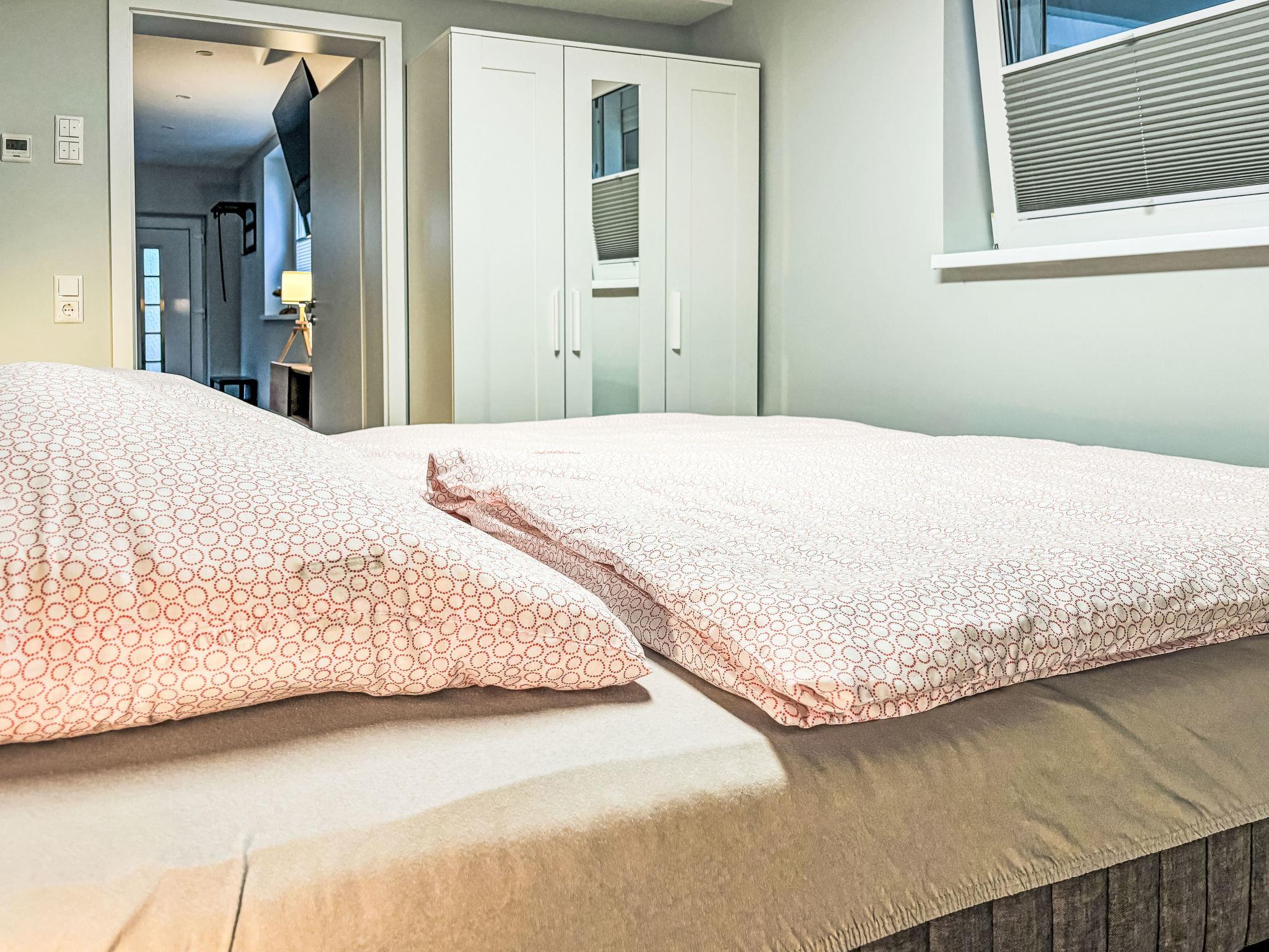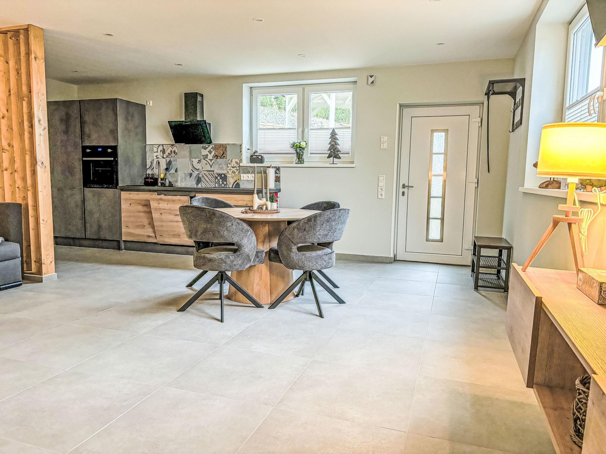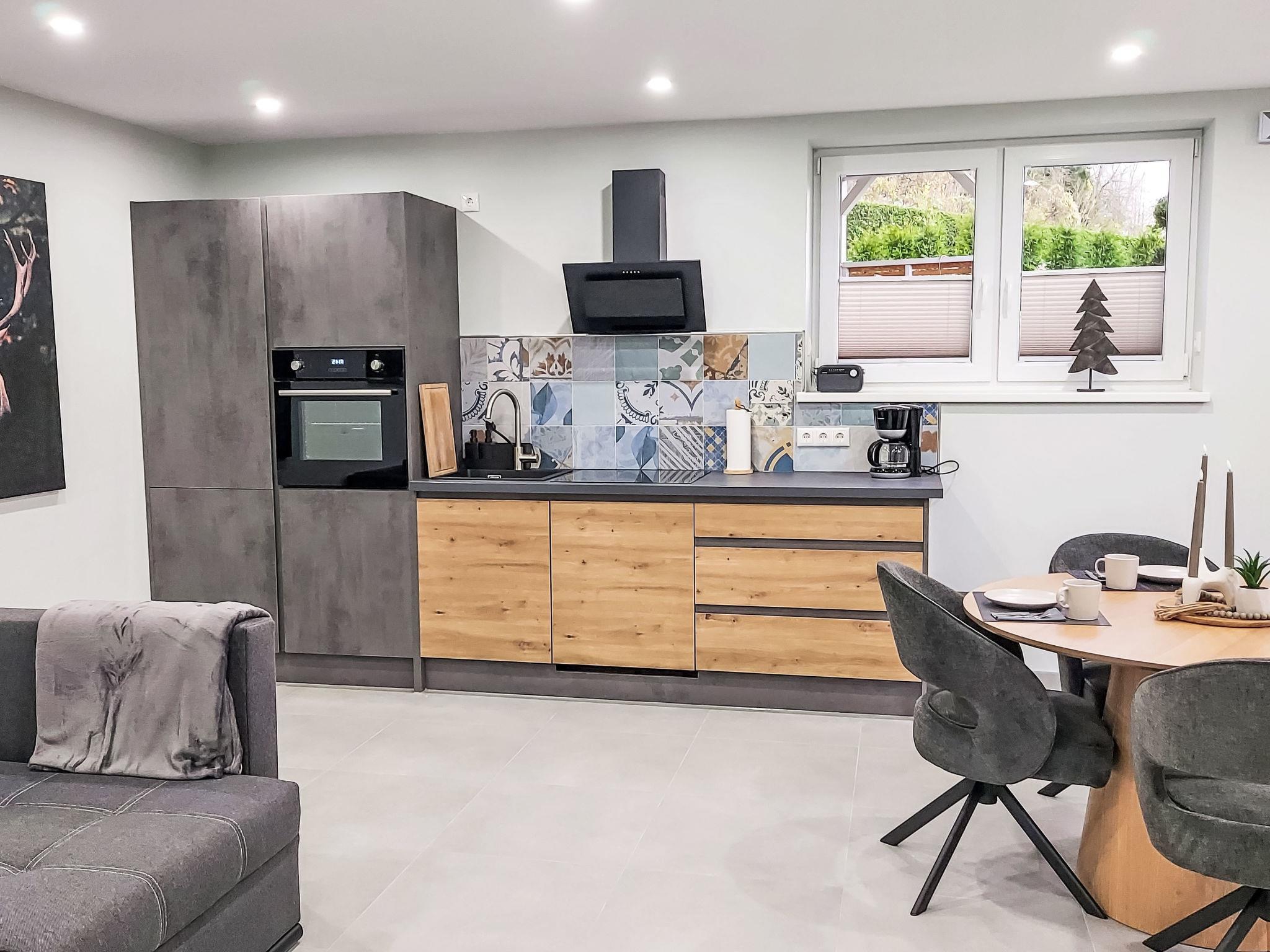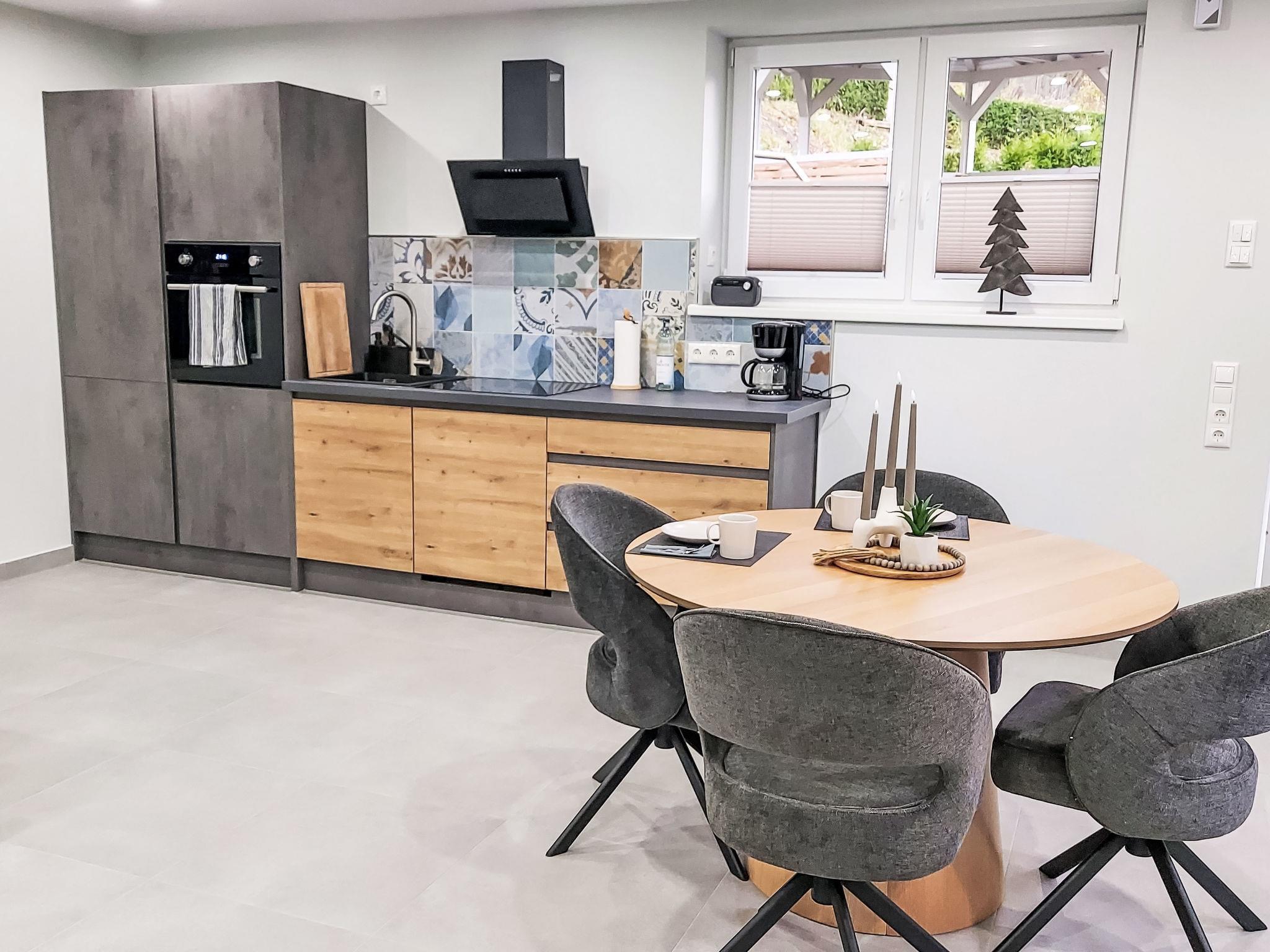 "Am Waldrand", 2-Zimmer-Wohnung 50 m2, im ebenerdigen Untergeschoss. Vollständig renoviert im Jahre 2024, modern und geschmackvoll eingerichtet: Wohn-/Esszimmer mit Esstisch und Kabel-TV (Flachbildschirm). Ausgang zur Terrasse. 1 Zimmer mit 1 Doppelbett (180 cm, Länge 200 cm), Kabel-TV (Flachbildschirm). Offene Küche (Backofen, Geschirrspüler, 4 Glaskeramikplatten, Toaster, Wasserkocher, Tiefkühler, elektrische Kaffeemaschine). Dusche/WC. Ölheizung, Fussbodenheizung. Terrasse 20 m2. Terrassenmöbel, Gartengrill. Zur Verfügung: Waschmaschine, Wäschetrockner. Internet (WLAN, gratis). Bitte beachten: Nichtraucher-Unterkunft. Maximal 1 Haustier/Hund erlaubt. Eigener Eingang, Rauchmelder.