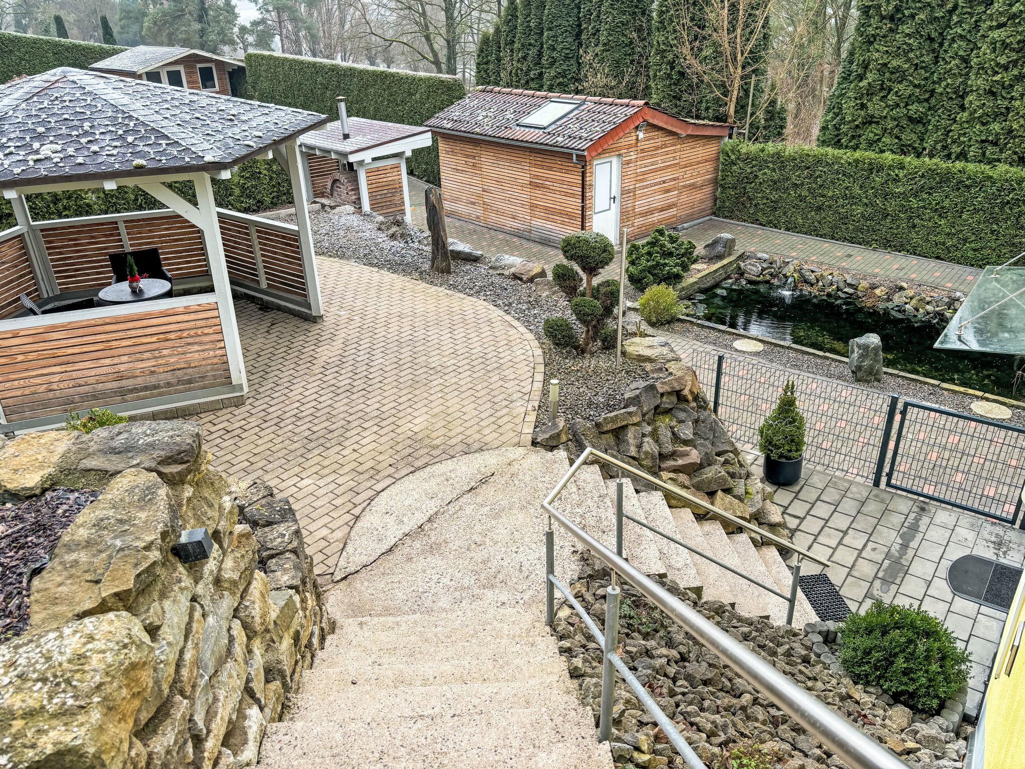 Modernes Dreifamilienhaus, einseitig angebaut, umgeben von Bäumen und Wiesen. Oberhalb von Lügde (Altstadt), am Ortsrand, 800 m vom Zentrum, ruhige Lage am Hang, 100 m vom Waldrand, 8 km vom See, 1 km vom Fluss, in einer Sackgasse. Treppenweg (18 Stufen) bis zum Haus. Parkplatz auf dem Grundstück. Einkaufsgeschäft 1 km, Lebensmittelgeschäft 1 km, Supermarkt 1 km, Restaurant 800 m, Bäckerei 1 km, Café 800 m, Bushaltestelle 300 m, Bahnstation "Lügde" 300 m, Freibad 3 km, Hallenbad 5 km, Thermalbad 5 km, See Schiedersee 8 km. Golfplatz (18 Loch) 1.5 km, Wanderwege ab Haus 200 m. Nahe gelegene Sehenswürdigkeiten: Stadtmauer, Wehrtürme, Altstadt Lügde, Schloss Hämelschenburg 12 km, Externsteine Bad Meinberg 30 km, Hermannsdenkmal 40 km. Bitte beachten: Fahrzeug empfohlen.