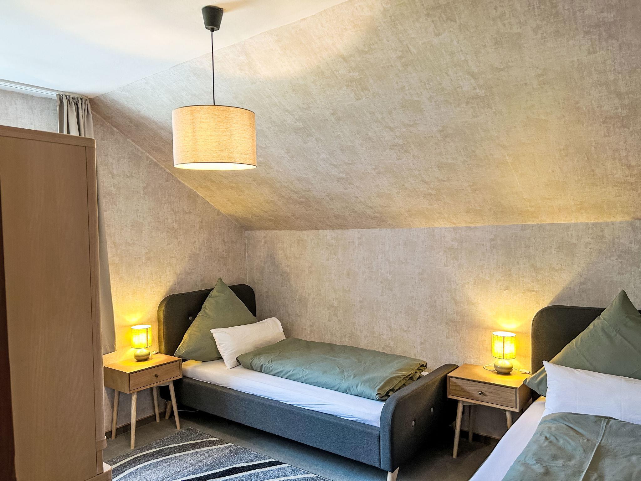 Kinderfreundliches, schönes, gemütliches Zweifamilienhaus, renoviert im Jahre 2025. Im Ort, 900 m vom Zentrum von Lügde, 6 km vom Zentrum von Bad Pyrmont, 33 km vom Zentrum von Detmold, ruhige, sonnige Lage, 20 m vom Fluss, im Grünen. Zur Mitbenutzung: Grundstück 300 m2, Liegewiese 100 m2. Grill. Im Hause: Einstellraum für Fahrräder, Waschmaschine (extra). Parkplatz (für 2 Autos) beim Haus. Einkaufsgeschäft, Lebensmittelgeschäft, Supermarkt 950 m, Restaurant 400 m, Bushaltestelle 300 m, Bahnstation "Lügde" 650 m, Sandstrand "Emmer" 250 m, Freibad 1.2 km, Hallenbad 2.7 km. Golfplatz (18 Loch) 1.8 km, Tennis 450 m, Reitstall 3 km, Kinderspielplatz 200 m. Nahe gelegene Sehenswürdigkeiten: Detmold, Hermansdenkmal, Externsteine, Freichlichtmuseum,Dampferfahrt in Höxter, Kulturerbe Kloster Corvey, Porzellanfabrik Fürstenberg.