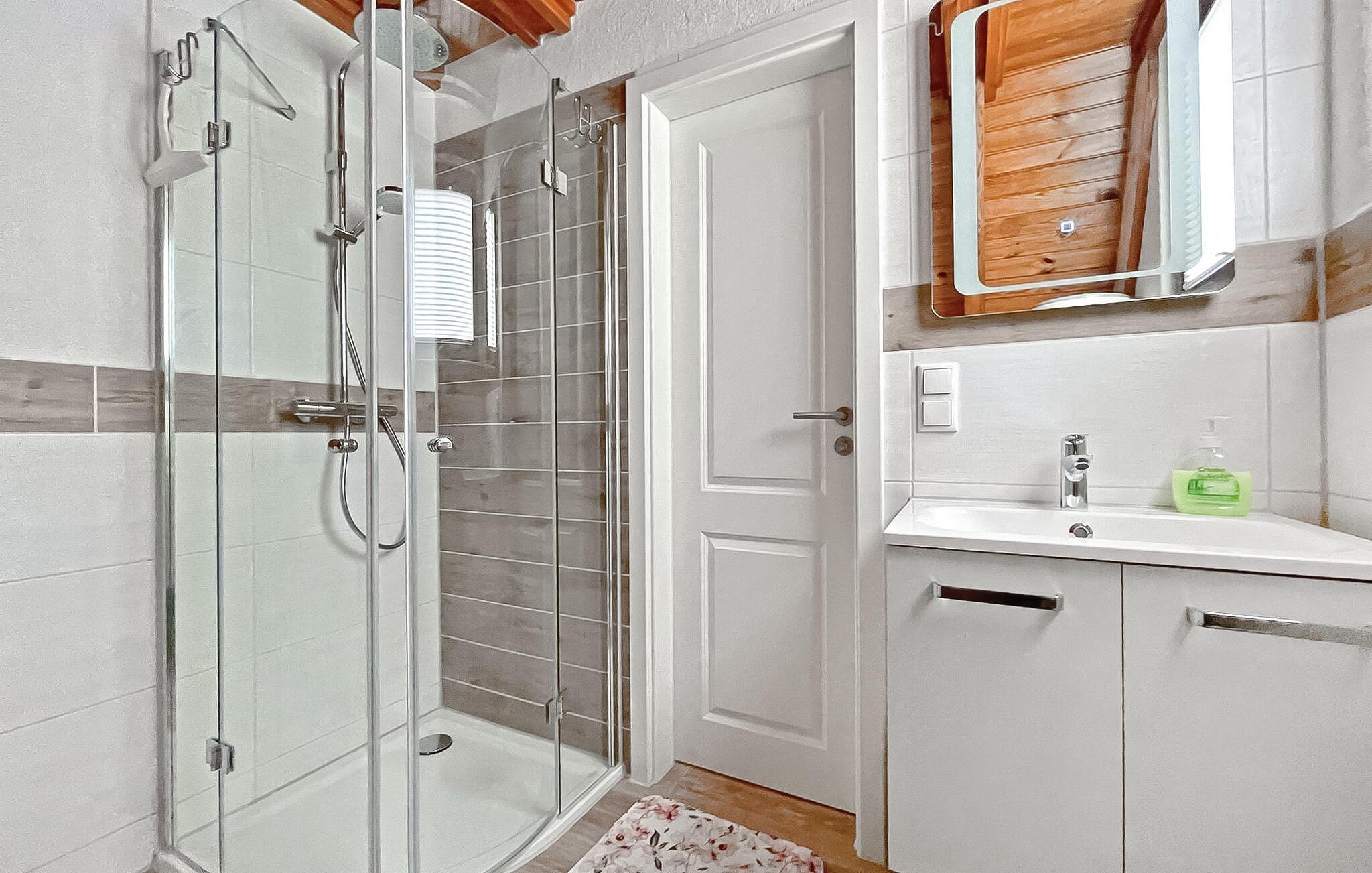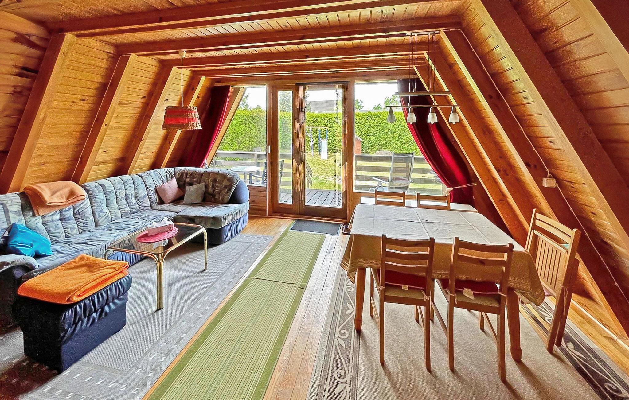 Das Ferienhaus steht auf einem ca. 500 qm großen Naturgrundstück. Es ist ausgestattet mit einem Wohnraum (Polstermöbel mit Schlaffunktion, Essplatz, Flachbild-TV, Radio), Kochecke mit Pantry (E-Kochfeld, Kühlschrank, Kaffeemasch., div. Küchengeräte) und einem 2023 komplett saniertem Bad mit bodengleicher Dusche und WC. Im Dachgeschoss sind zwei Schlafräume über steile Treppe (je 2 Einzelbetten) vorhanden. Für kühle Tage steht eine Elektroheizung (Nachtspeicherofen) zur Verfügung. Vorhanden sind eine möblierte Terrasse mit Grill, Spielgerät für Kinder (Schaukel, Rutsche), große Freifläche sowie Parkplatz.Im Gesamtpreis sind die Endreinigung und Bettwäsche enthalten. Handtücher sind bitte selbst mitzubringen. Vor Ort zu zahlen: Energie und Wasser nach Verbrauch. Haustiere sind in diesem Objekt nicht erlaubt.