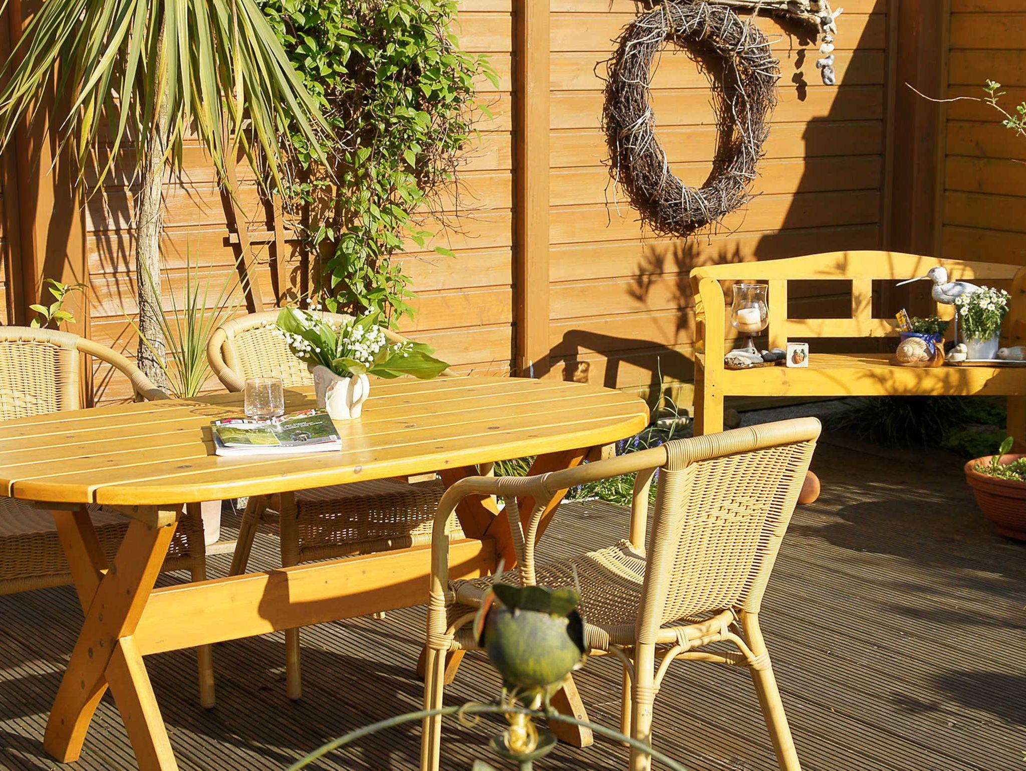 Charmante Ferienwohnung mit Terrasse, großem Garten und Nähe zu Stralsund, Ostseestrand und Radwegen.