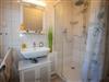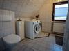 Im Badezimmer befinden sich eine Duschkabine, WC, Waschbecken, Schränkchen, Waschmaschine und Trockner.