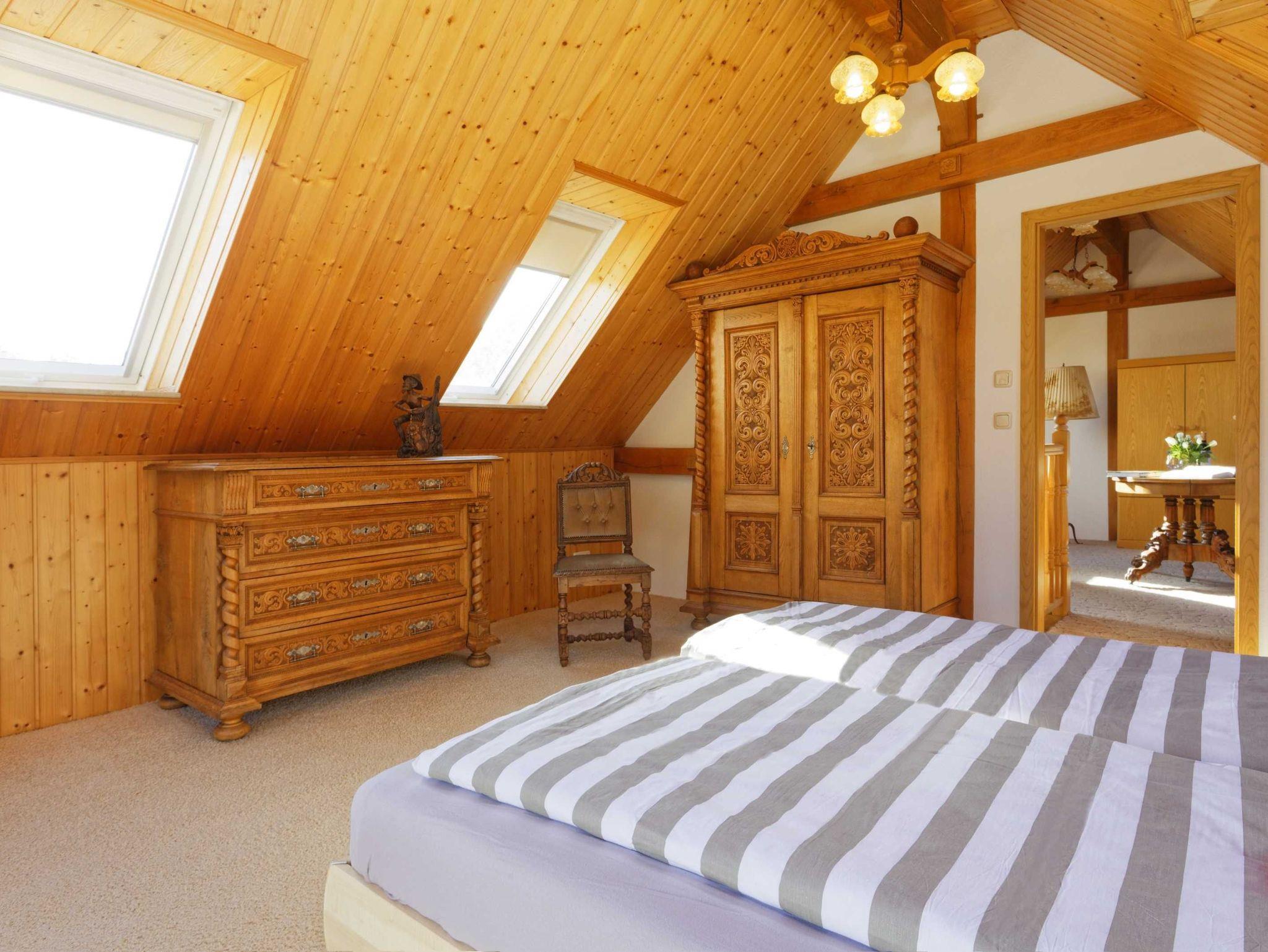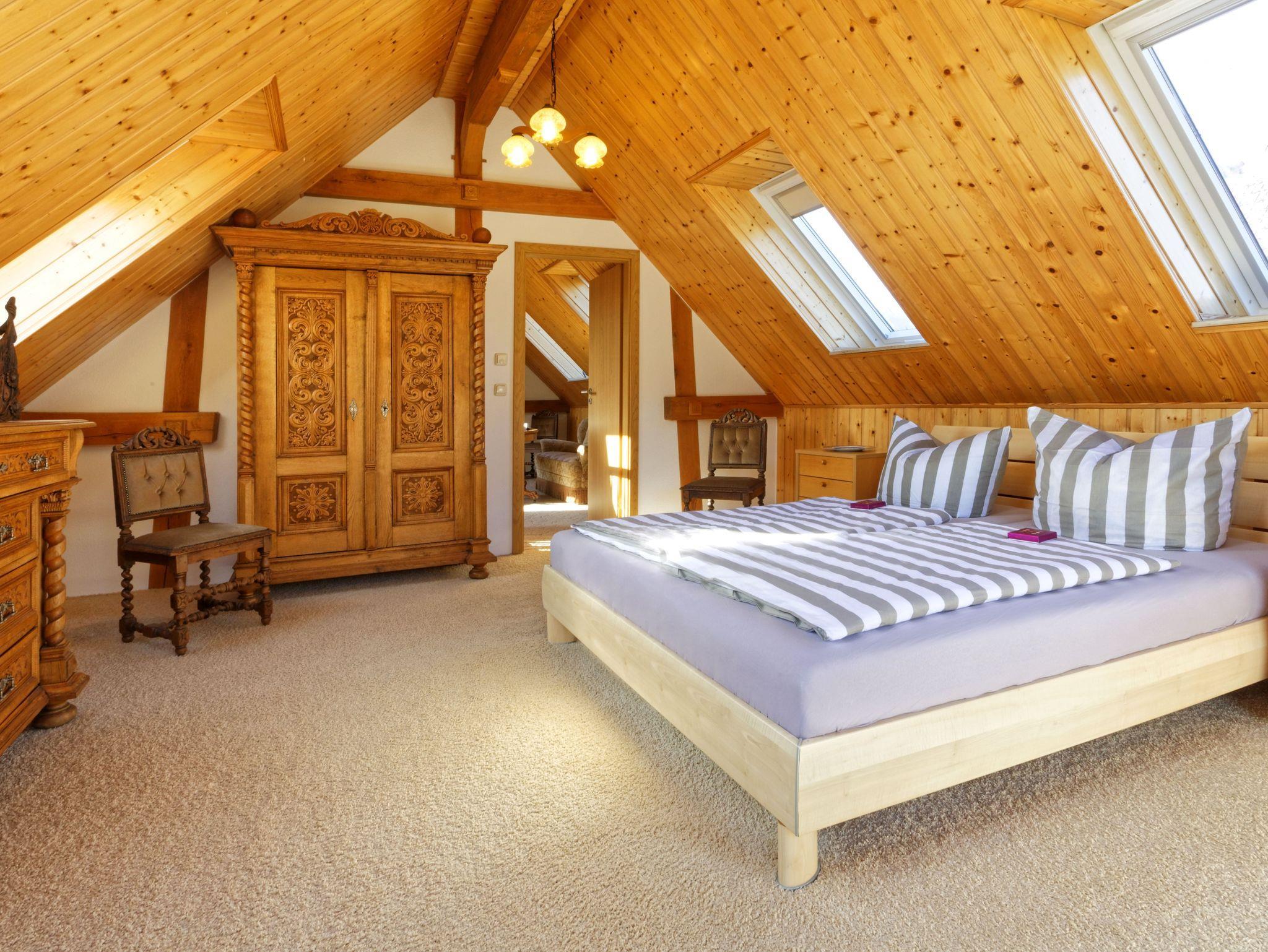 Das gemütliche Ferienhaus befindet sich direkt auf dem Grundstück des Wald- und Jagdgut und ist ca. 65 m² groß. Im unteren Bereich befinden sich die vollausgestattete Küche mit Sitzecke, Backofen, Kühlschrank mit Gefriermöglichkeit, Wasserkocher, Kaffeemaschine und Toaster. Das geräumige Badezimmer ist mit einer großen Dusche und WC ausgestattet. Über eine Treppe gelangen Sie in das gemütliche Wohnzimmer mit einer Couch, einem Einzelbett und einem großen Flachbildfernseher. Direkt vom Wohnzimmer aus gelangen Sie in das große Schlafzimmer mit Doppelbett, Kleiderschrank und einer Kommode.