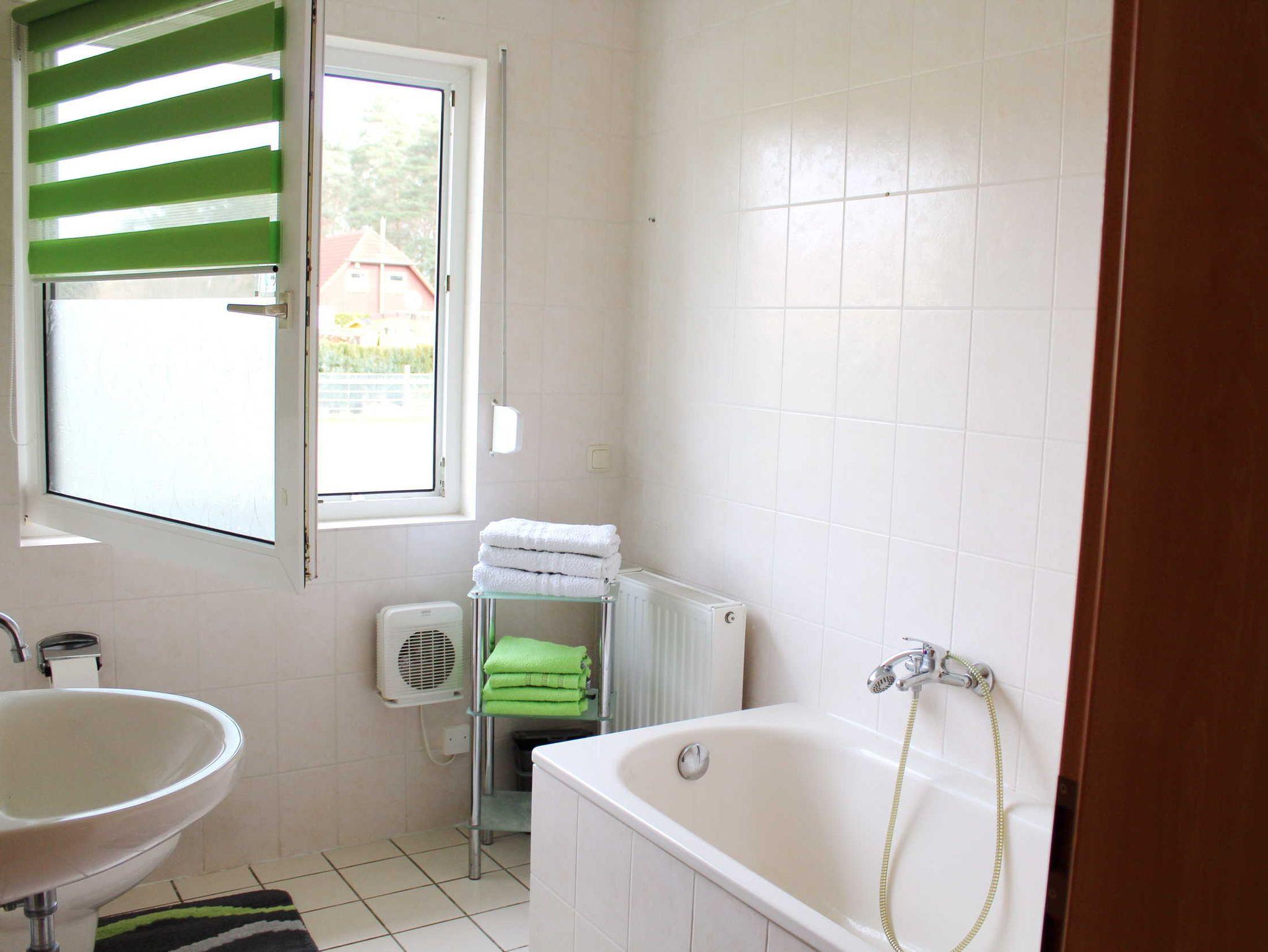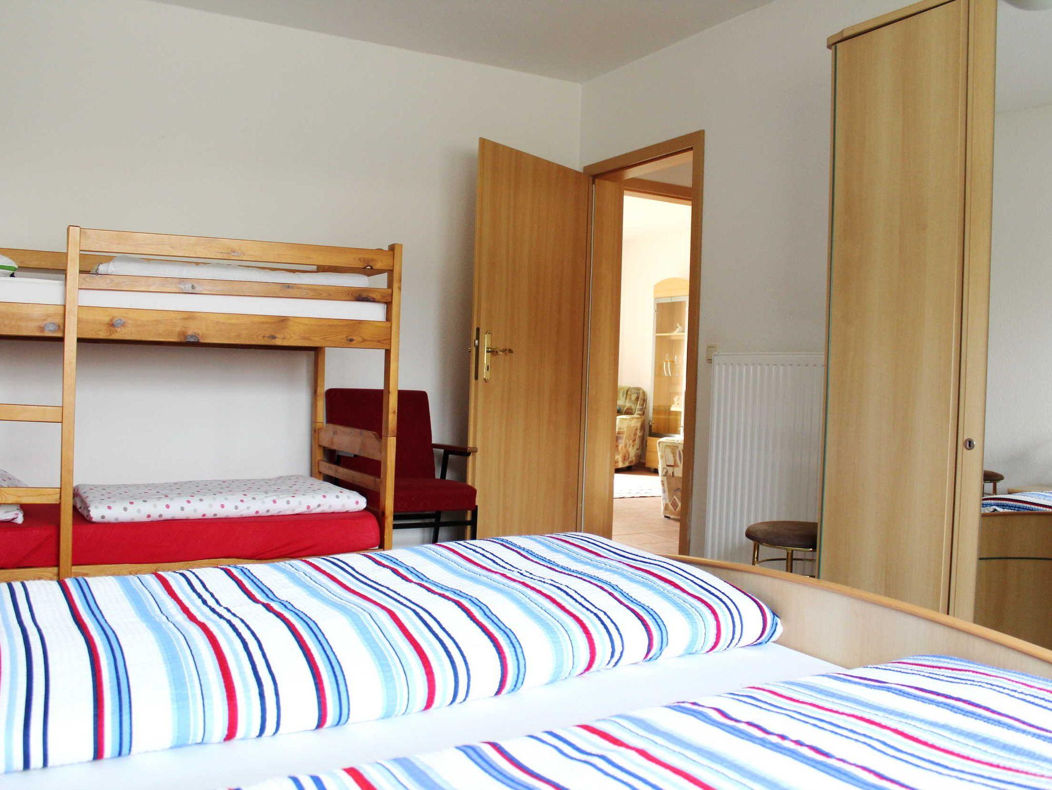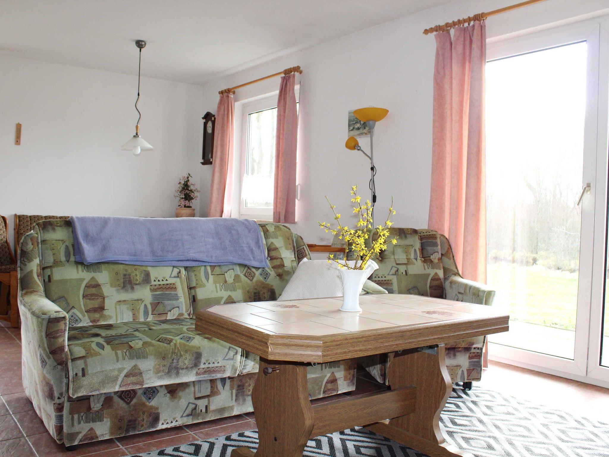 Die Ferienwohnung befindet sich im Haus 3 in der unteren Etage auf der linken Seite. Sie ist 70 m² groß und besteht aus einem Wohnzimmer mit integrierter kompletter Küchenzeile und Essplatz, einem Schlafzimmer mit Doppelbett und Etagenbett, einem Bad mit Badewanne/WC und einer Terrasse. Ein PKW-Stellplatz steht Ihnen am Haus zur Verfügung.