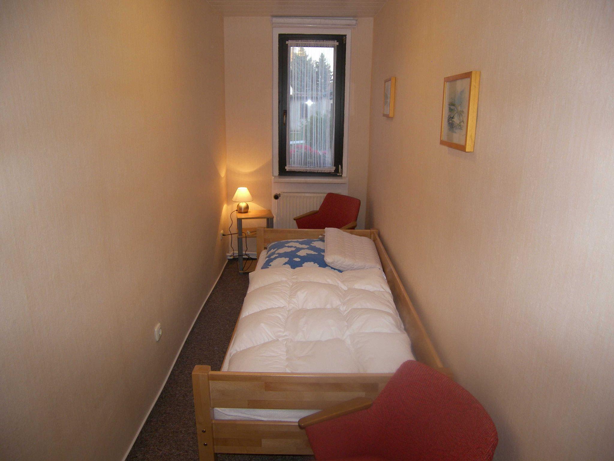 Das Schlafzimmer ist mit einem Doppelbett (180 x 200) und einem geräumigen Kleiderschrank ausgestattet. Im zweiten kleineren Schlafzimmer befindet sich ein Einzelbett.
