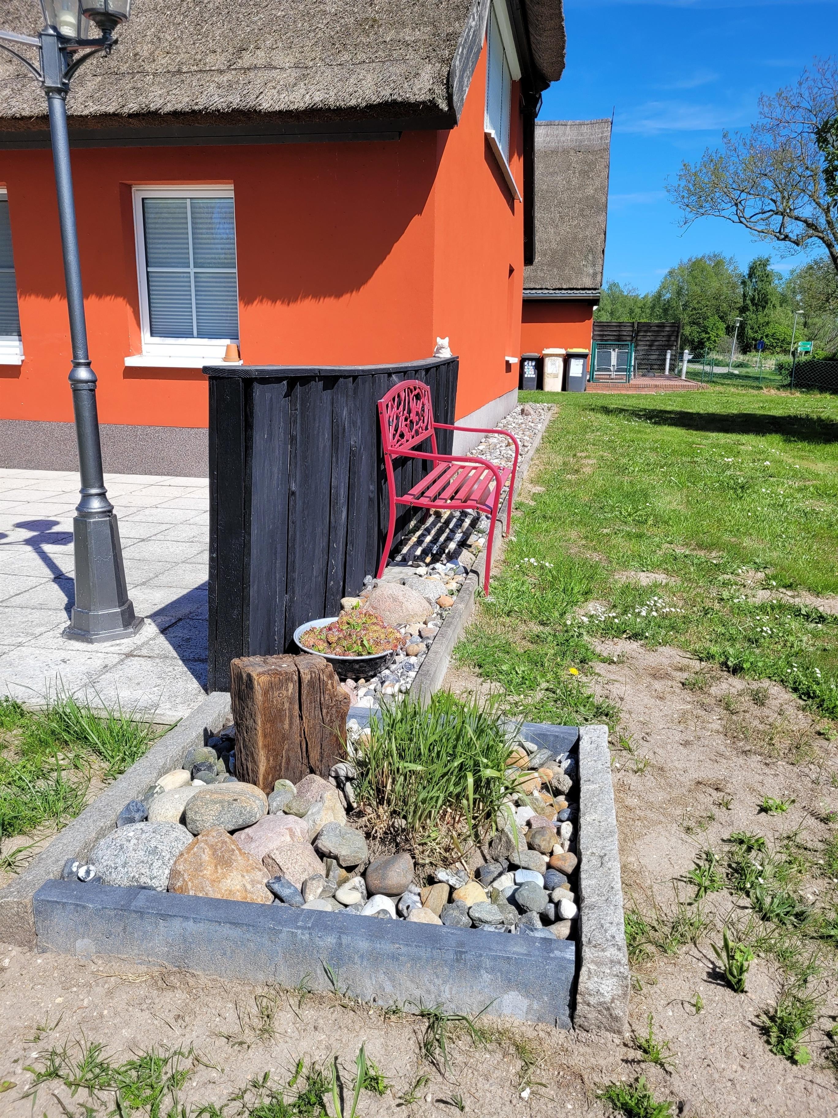 Gemütliche Ferienwohnung im Reetdachhaus mit Blick auf das Naturschutzgebiet Gnietz und das Achterwasser.
