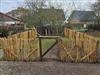 Die linke Doppelhaushälfte steht auf einem ca. 500 m² großen Gartengrundstück, das nur teilweise eingezäunt ist. Zur sicheren Unterbringung von Haustieren befindet sich vor dem Haus ein vollständig eingezäunter Bereich von ca. 40 m². Die Staketen des Zauns sind ca. 1,20 m hoch. Der Bereich befindet sich zwischen Terrasse und vorderer Grundstücksgrenze zur Straße und ist vom Koch-/ Essbereich vollständig einsehbar.