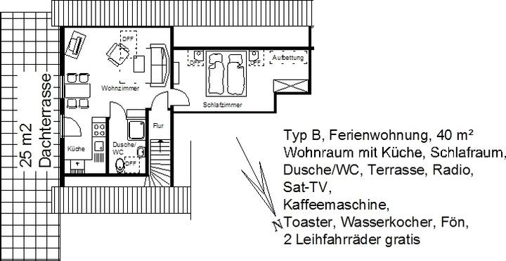 Grill, Tischtennis, Fahrräder und der hauseigene Parkplatz direkt vorm Haus stehen Ihnen kostenfrei zur Verfügung und in der Nähe laden Seen mit kostenfreien Badestellen zum Baden oder Angeln ein.