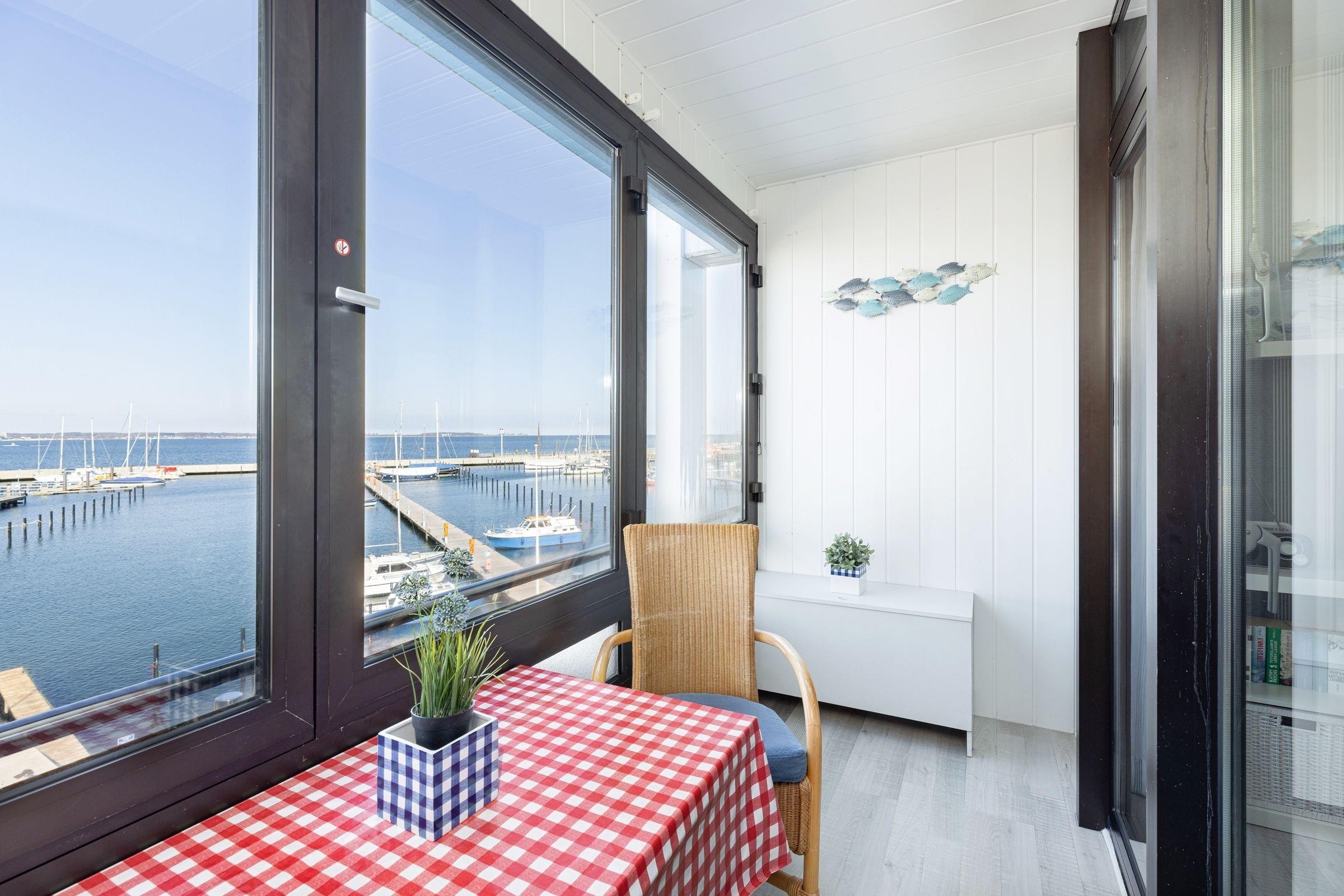 Gemütliche Ferienwohnung Seemöwe in Laboe mit Loggia und Blick auf die Kieler Förde, direkt am Yachthafen gelegen.