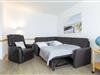Wohnzimmer: Schlafcouch (140x200 cm), Kleiderschrank, TV, Verdunkelung: Vorhänge