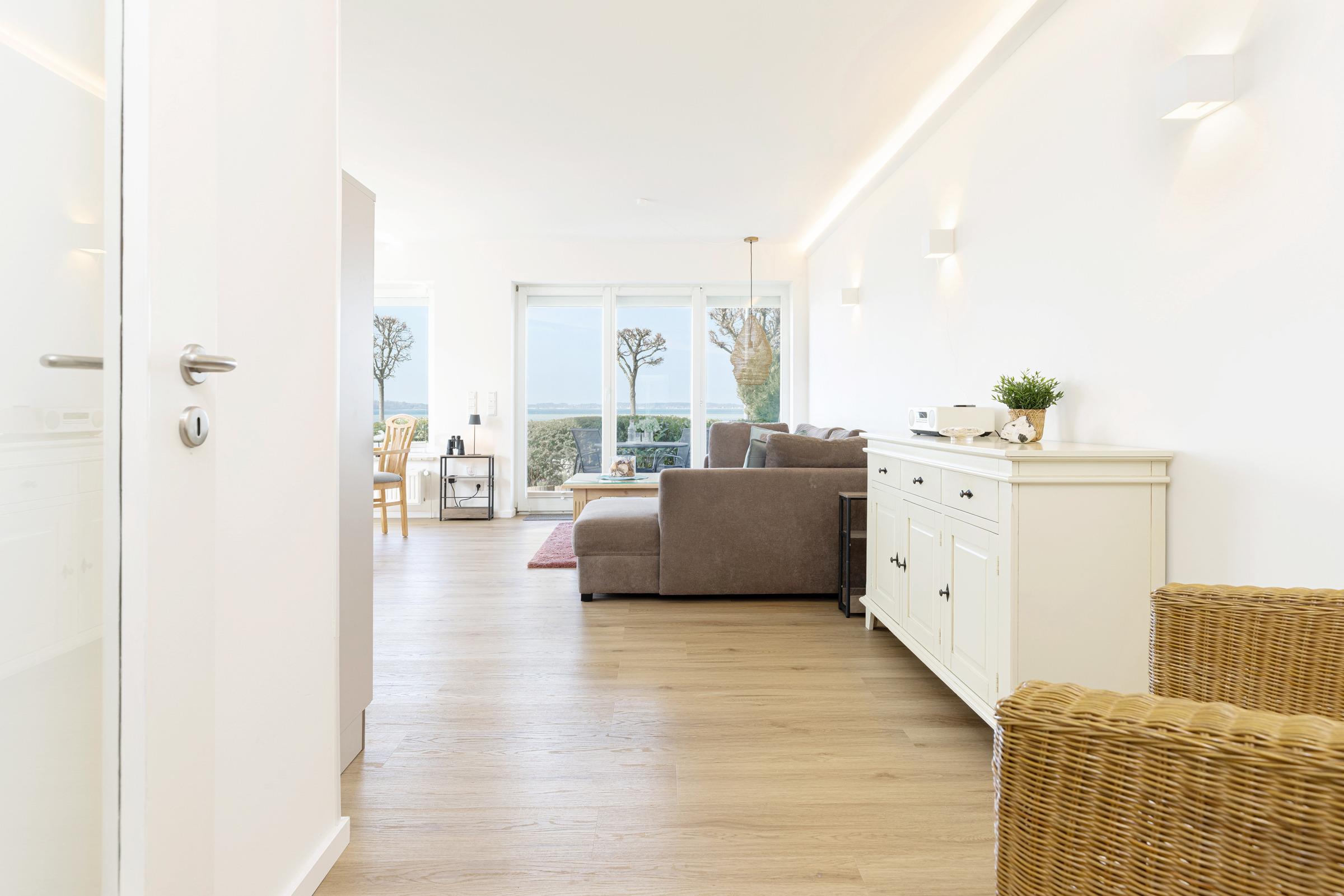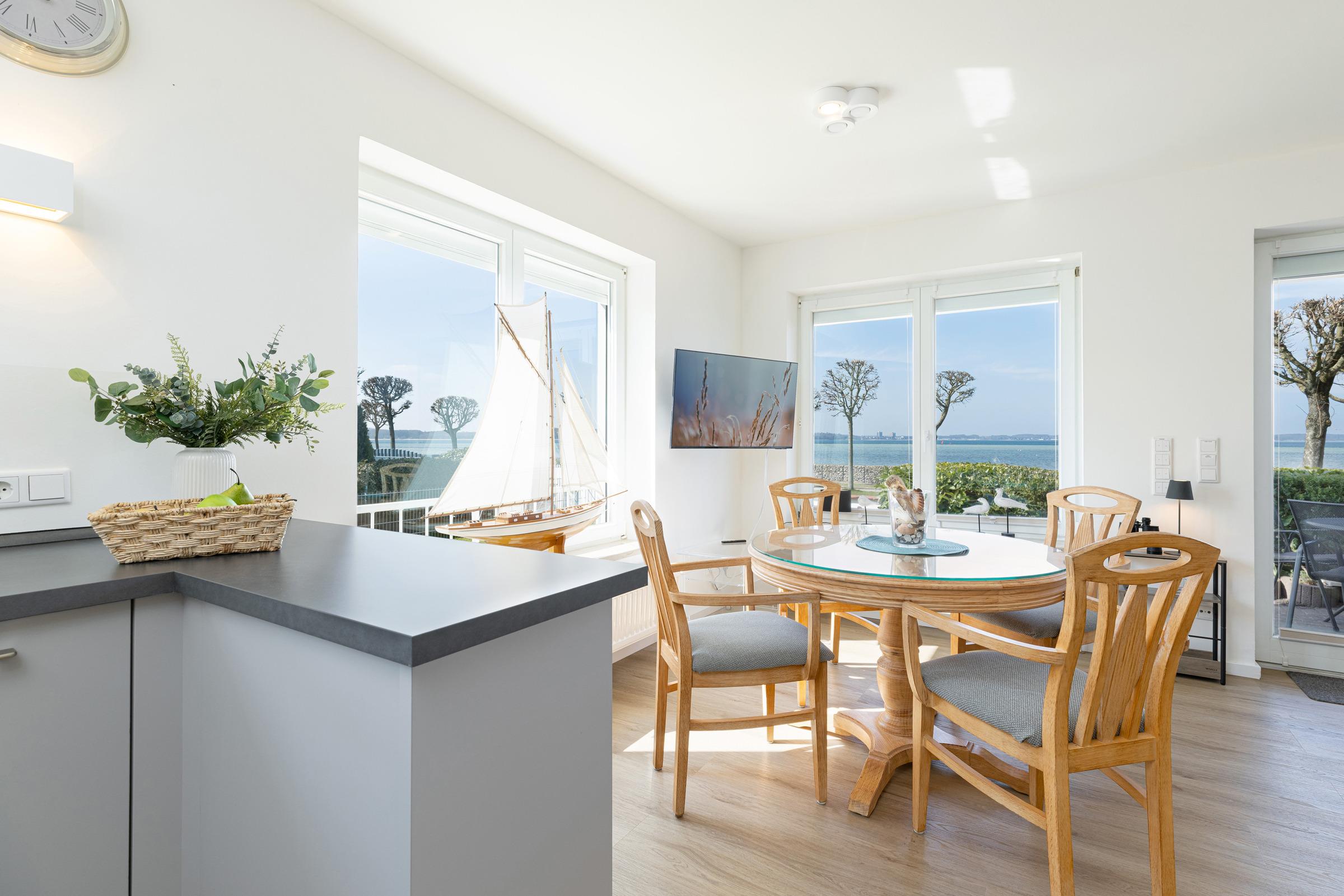 Exklusive Ferienwohnung Sehpferdchen mit Terrasse und Meerblick in Laboe, direkt an der Strandpromenade.