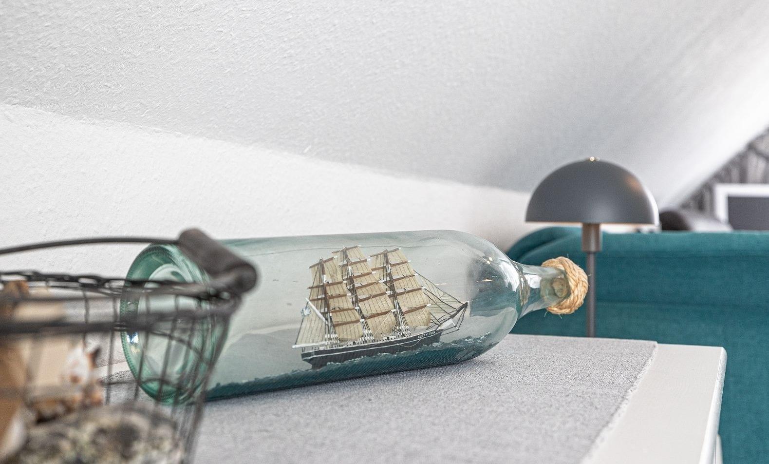 Das maritim eingerichtete 2-Zimmer-Appartement Cutty Sark ist für max. 4 Personen geeignet. Es befindet sich in der 1. Etage des Appartementhauses Windjammer.