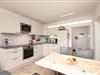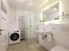 Im Eingangsbereich befindet sich die Garderobe und ein Abstellbereich, in dem Sie sowohl Reinigungsutensilien als auch ein separaten Gefrierschrank finden. Das davon abgehende Badezimmer ist großzügig gestaltet mit einer ebenerdigen Dusche und einem Waschtrockner. Im separaten Schlafzimmer fühlen Sie sich in einem 50 cm hohem, 1,80 m breiten, am Fußende offenen Doppelbett wohl, ein großer Schiebetür-Schrank bietet Ihrer Urlaubskleidung mehr als ausreichend Platz. Ablagemöglichkeiten, dimmbare Leselampen und ein kleiner Flatscreen-TV mit integriertem DVD-Player runden die Gemütlichkeit ab. Der offene Wohnbereich verfügt über eine hochwertige Hochglanz-Küche, die mit Markengeräten (Backofen, Mikrowelle, Wasserkocher, Kaffeemaschine, Senseo-Pad-Maschine, Eierkocher) ausgestattet ist. Es schließt ein Essbereich mit Leder bezogener Bank und Stühlen an. An der Fensterfront entspannen Sie auf einem bequemen Leder-Schlafsofa, auf dem Wohlfühl-Sessel lesen Sie ein gutes Buch, hören Musik oder lassen sich vom Fernsehprogramm berieseln. Vom Wohnbereich gelangen Sie auf die Terrasse. Dort genießen Sie die Sommerstrahlen auf den Gartenmöbeln oder im eigenen Strandkorb.