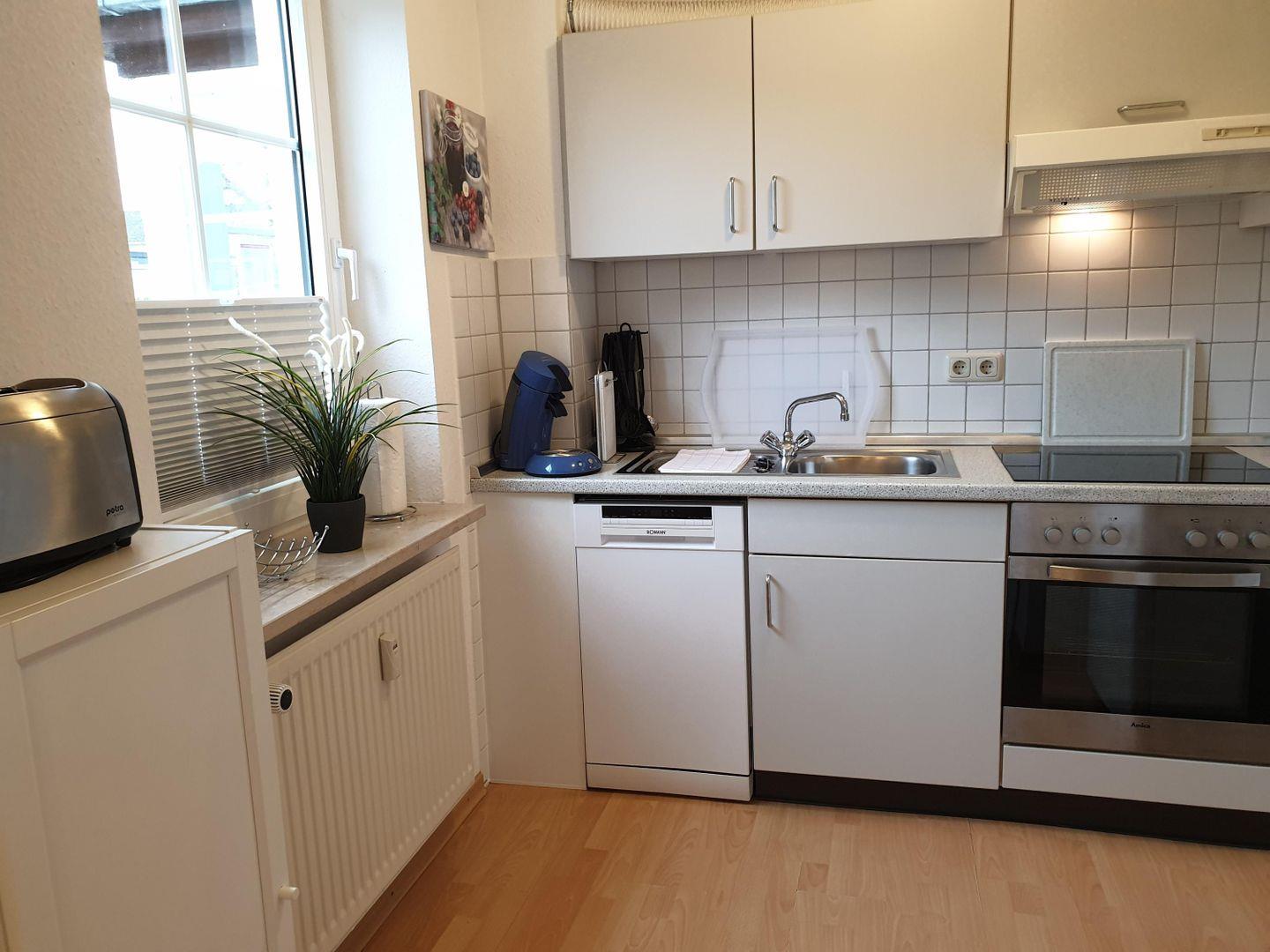 Der offene Wohn- und Essbereich empfängt dich mit einer bequemen Schlafcouch, einem Esstisch und einer modernen Küchenzeile. Ob Frühstück mit Blick ins Grüne oder ein gemeinsames Abendessen – hier lässt es sich wunderbar verweilen. Die Küche ist mit Ceranfeld, Backofen, Spülmaschine, Kaffeemaschine, Wasserkocher und Toaster gut ausgestattet – alles da für Selbstversorger. Zwei Fernseher, eine HiFi-Anlage und kostenloses WLAN sorgen für Unterhaltung am Abend.