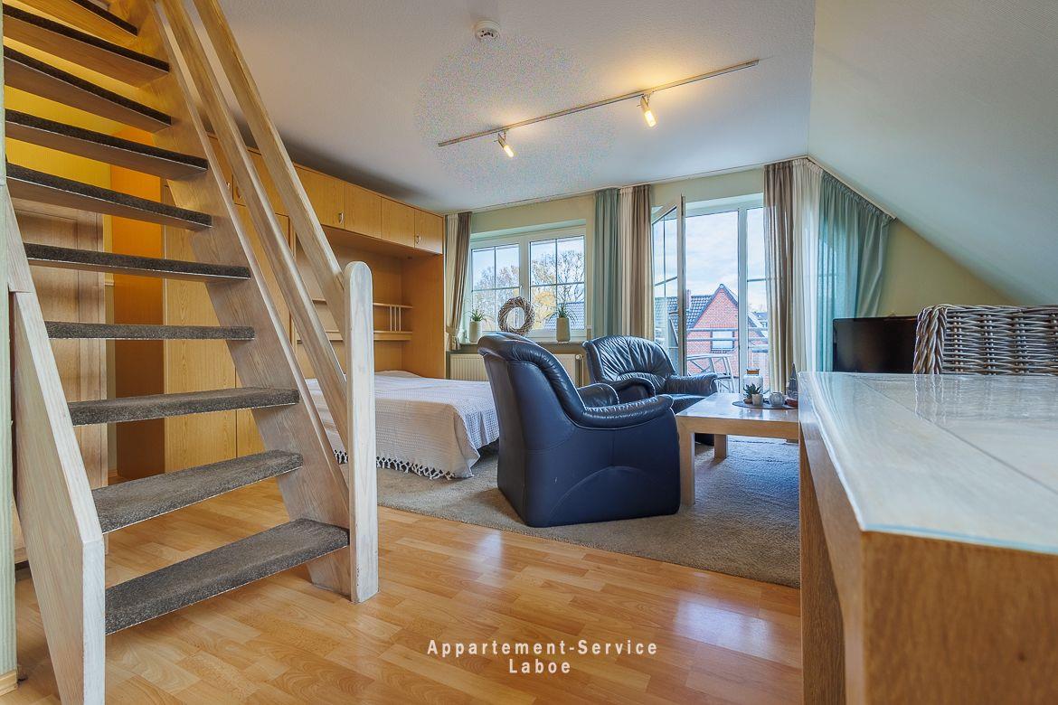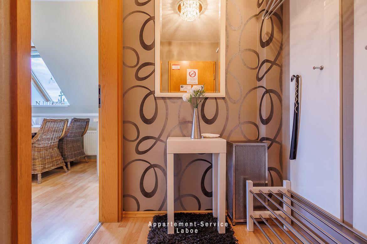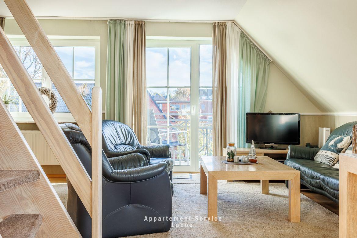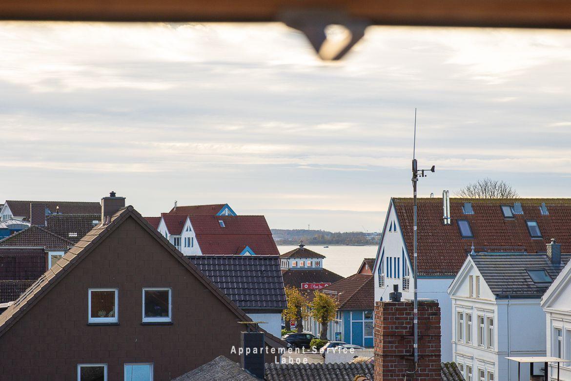 Moderne Maisonette-Ferienwohnung Bellevue W10 in Laboe, nur 30 m vom Strand entfernt, mit Balkon und eigenem Stellplatz.
