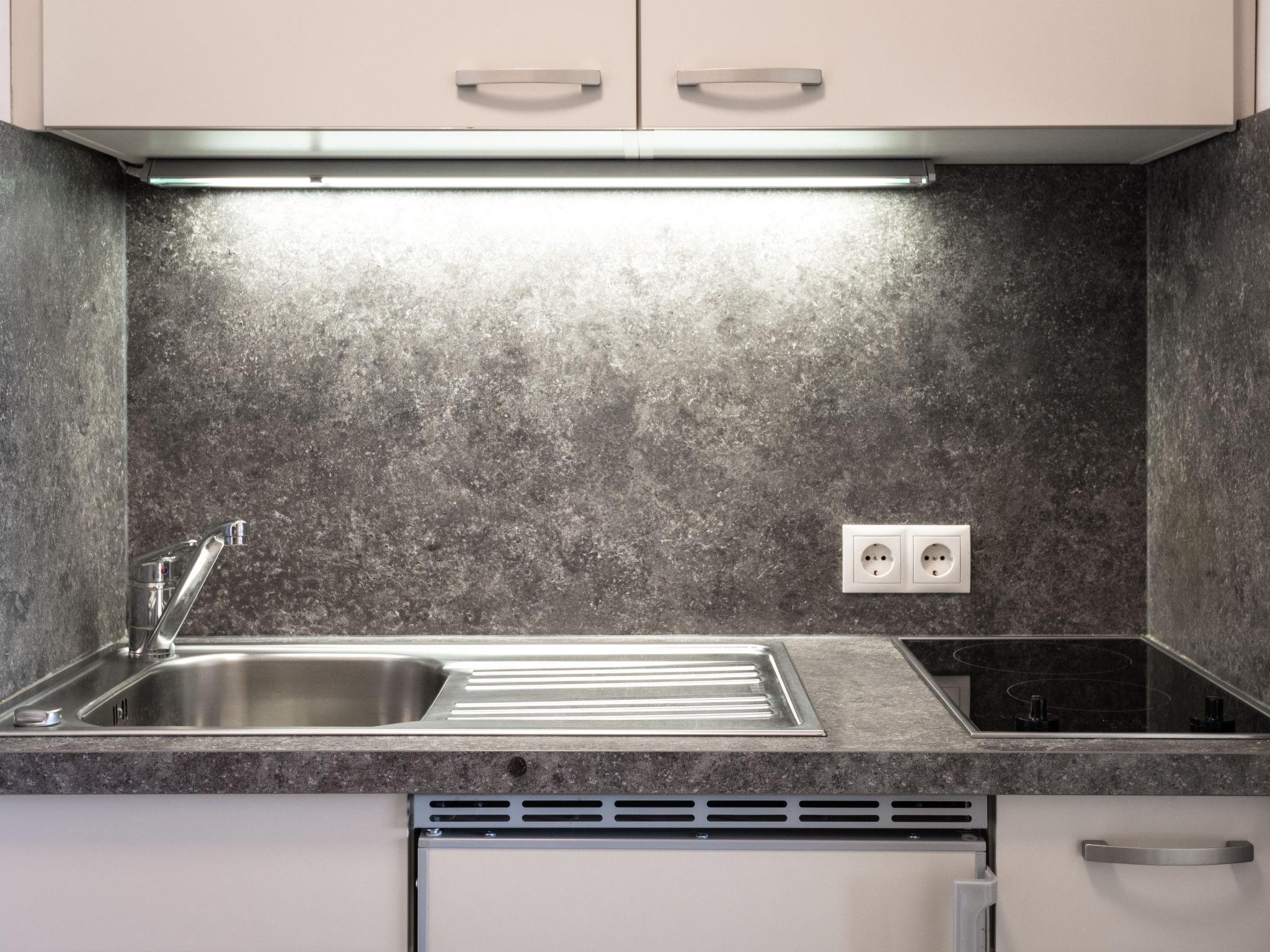"Sonnenschein (B807)", 1-Zimmer-Wohnung 33 m2 im 8. Stock, Westlage. Wohn-/Schlafzimmer mit 1 Doppelbett (2 x 90 cm, Länge 200 cm), Sat-TV (Flachbildschirm). Ausgang zum Balkon. Kochnische im Eingang (2 Glaskeramikplatten, Toaster, Wasserkocher, elektrische Kaffeemaschine). Dusche/WC. Balkonmöbel. Schöne Sicht auf die Landschaft. Zur Verfügung: Bügeleisen. Internet (WLAN, gratis). Bitte beachten: Nichtraucher-Unterkunft. Rauchmelder. SDE42214